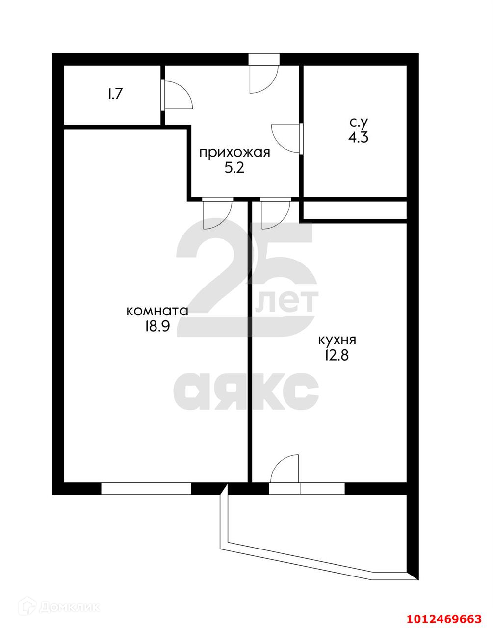 Балкон, лоджия 1 балкон