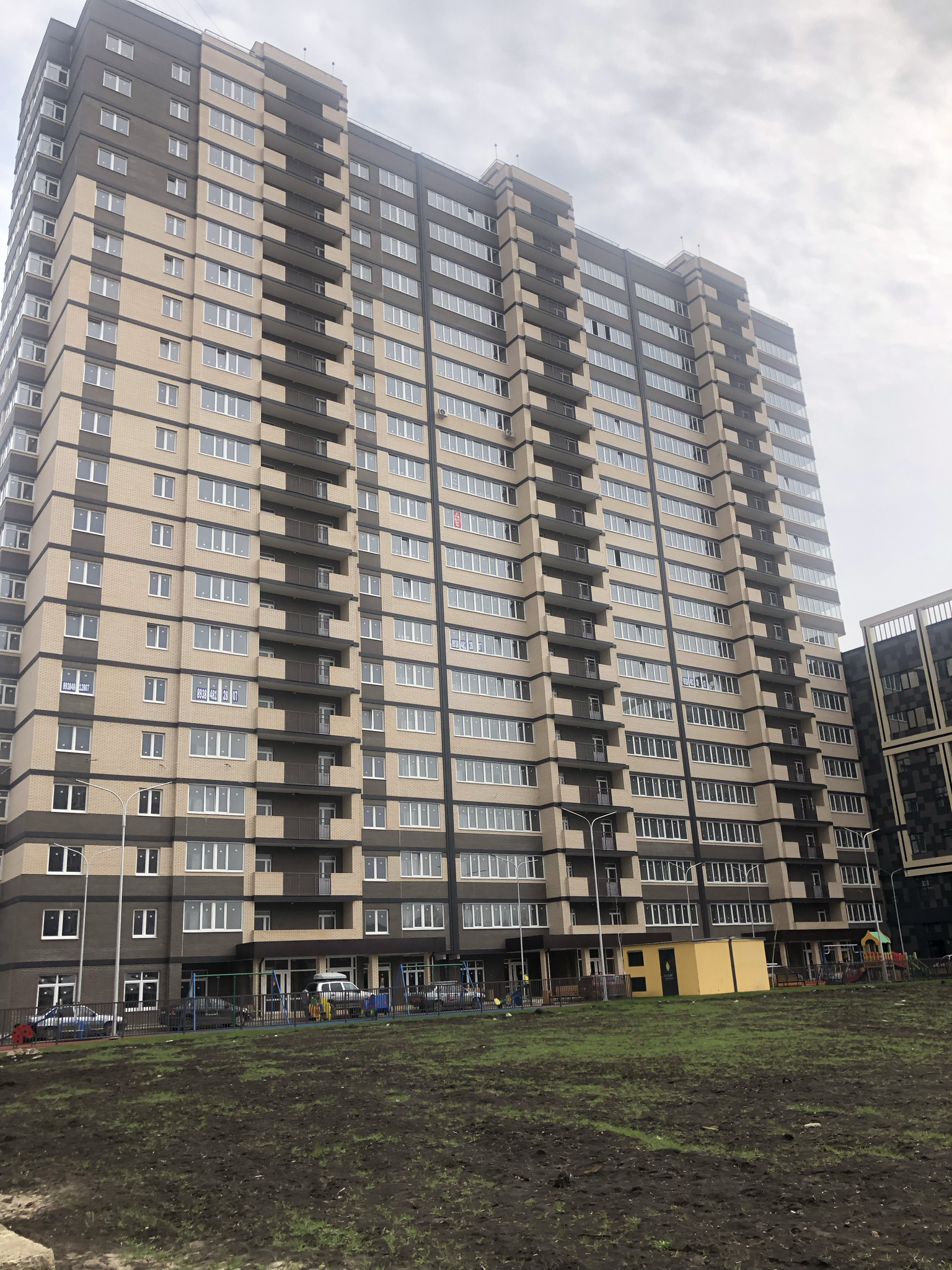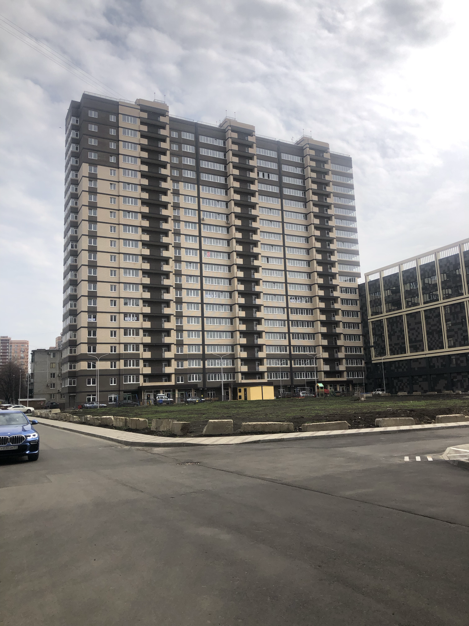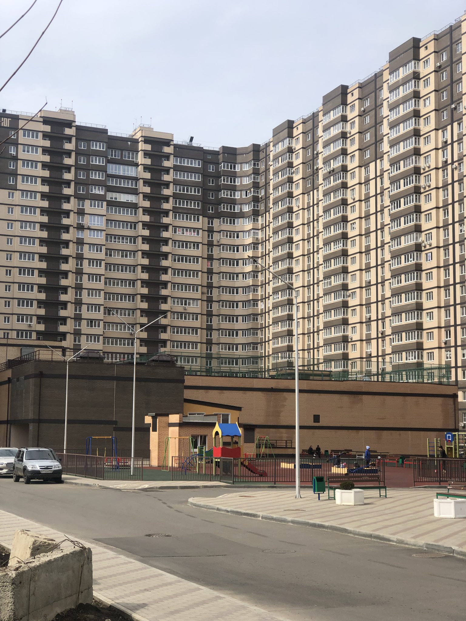 В комплексе детские площадки в виде городка,спортивные площадки,благоустроенная  ландшафтная территория,большая безопасная парковка.