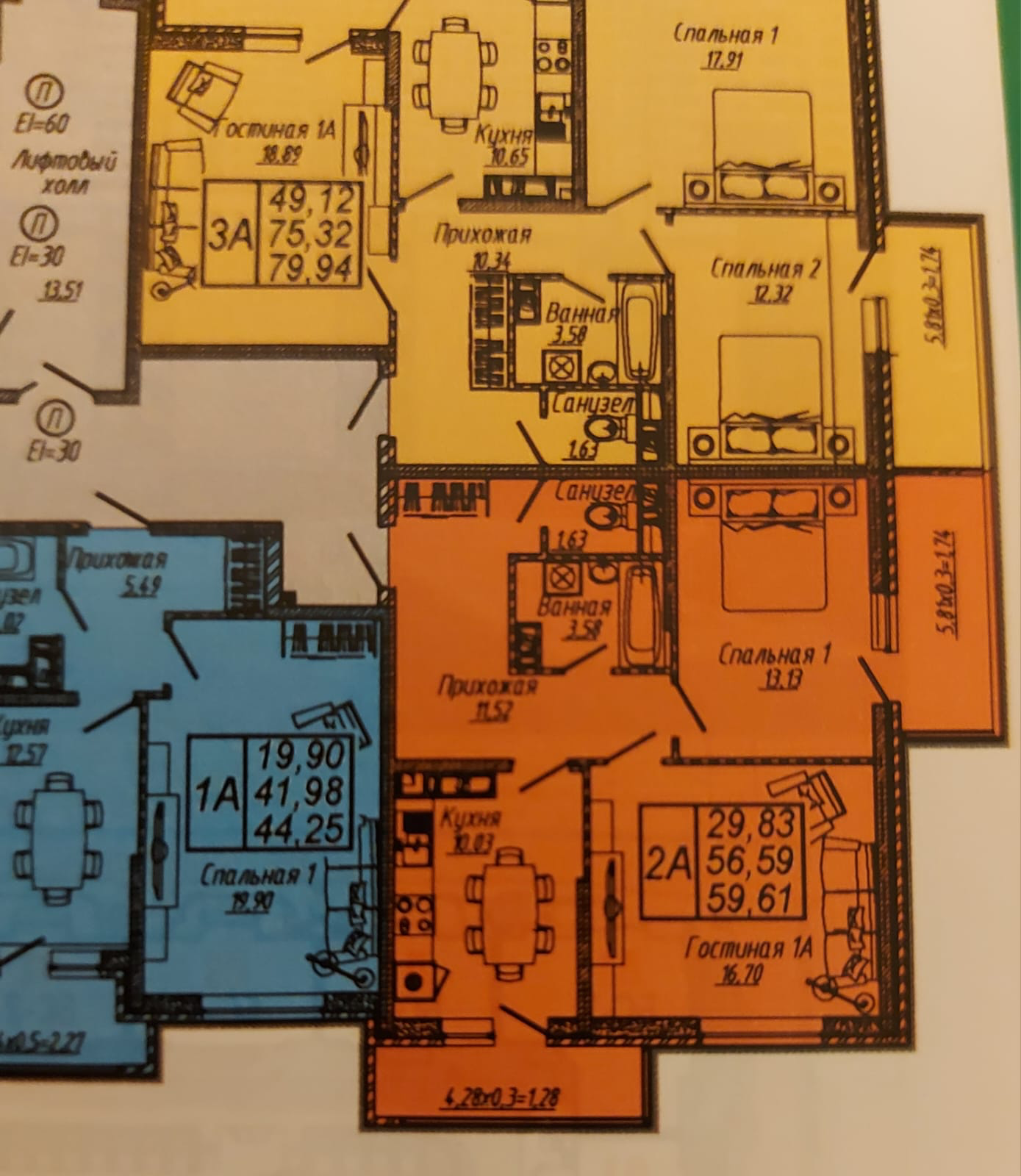 Общая площадь 59.61 м2
