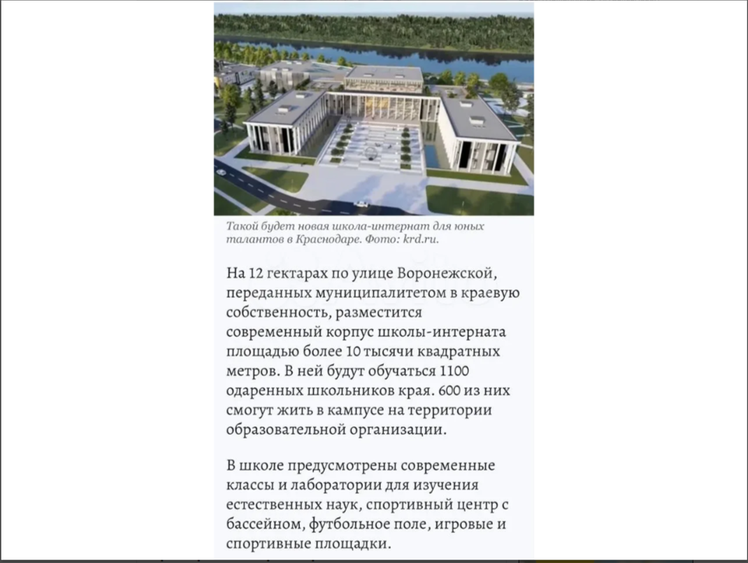 >>В 30 метрах от дома строится одна из лучших школ для одаренных детей- «Сириус» (как в Сочи).