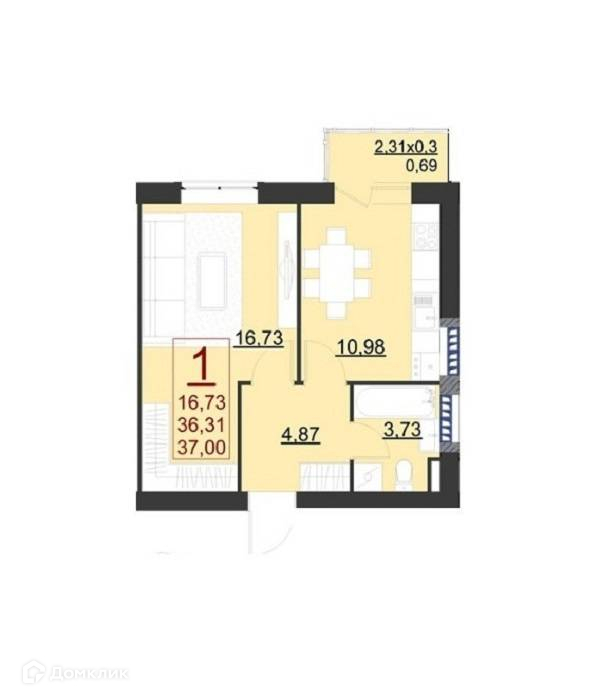 Жилая площадь 16.7 м2