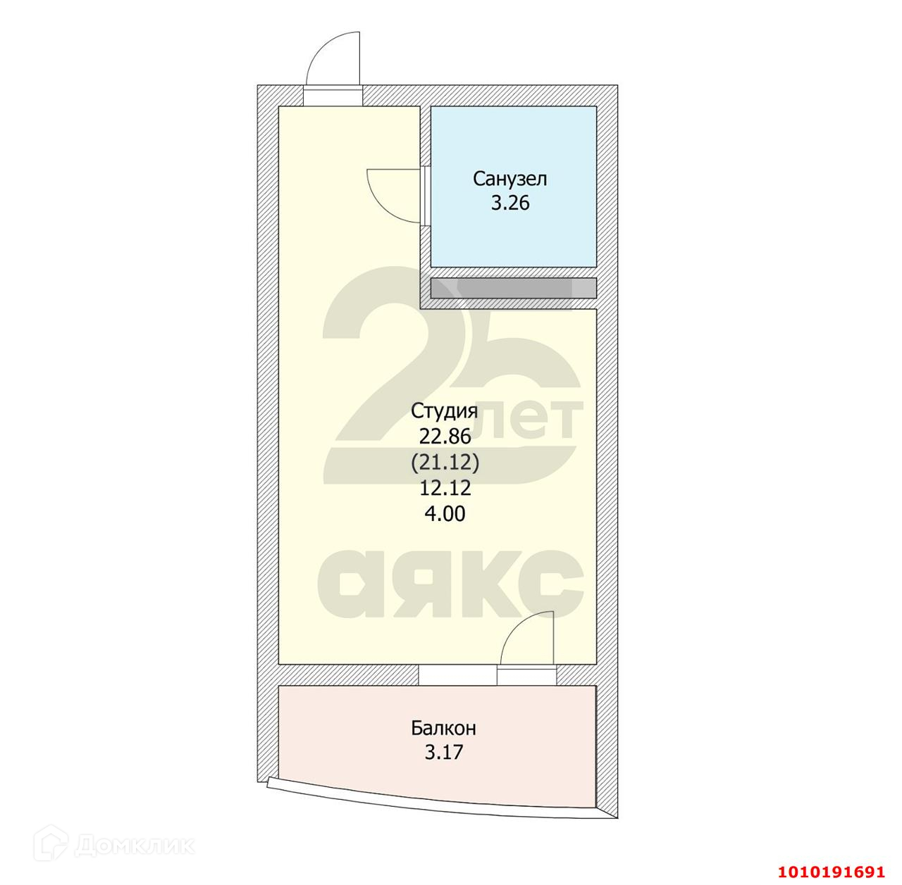 Общая площадь 22.5 м2