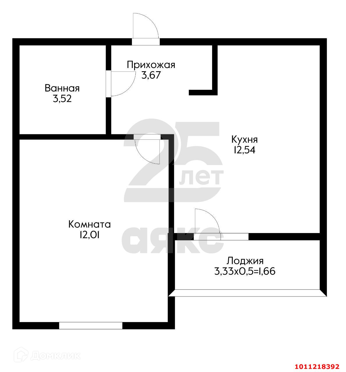 Площадь квартиры 33 кв. м. с выходом на лоджию. Ее особенность в том, что комната и кухня широкая - это позволит удобно использовать пространство и разместить зону кухни и отдыха.
