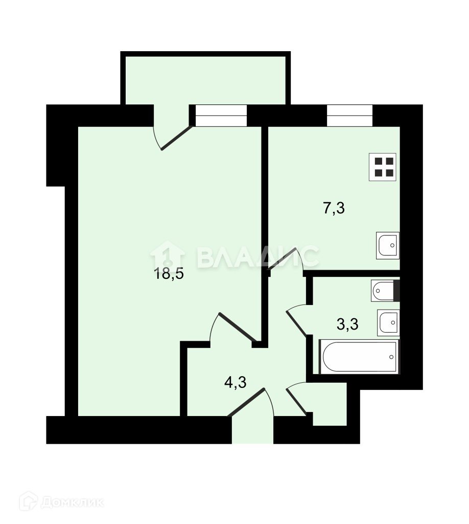 Общая площадь 33 м2