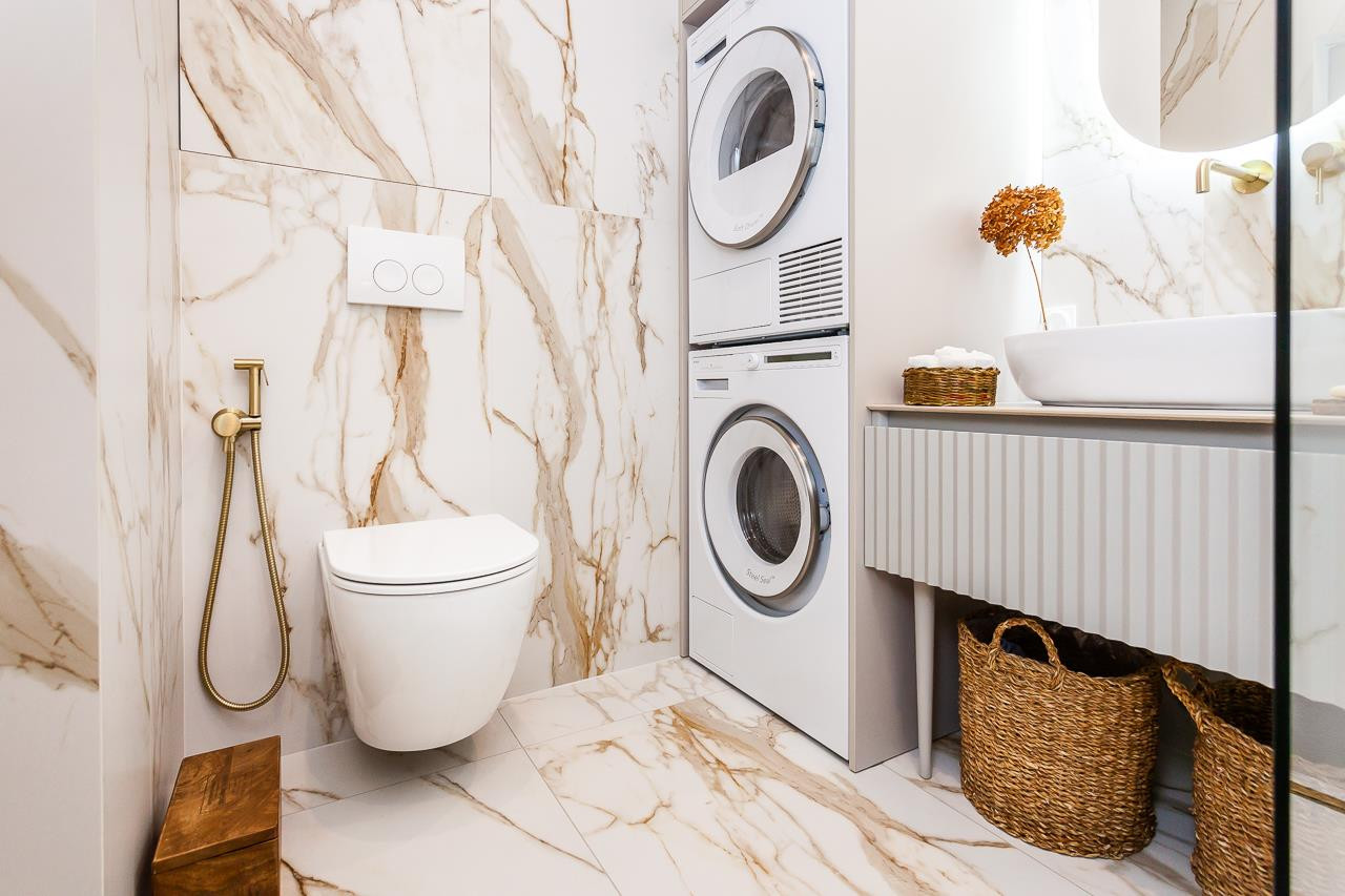 Бытовая техника в санузле: стиральная и сушильная машины ASKO.