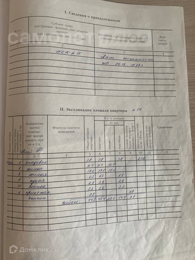 Общая площадь 44.3 м2