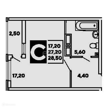 Общая площадь 27.8 м2