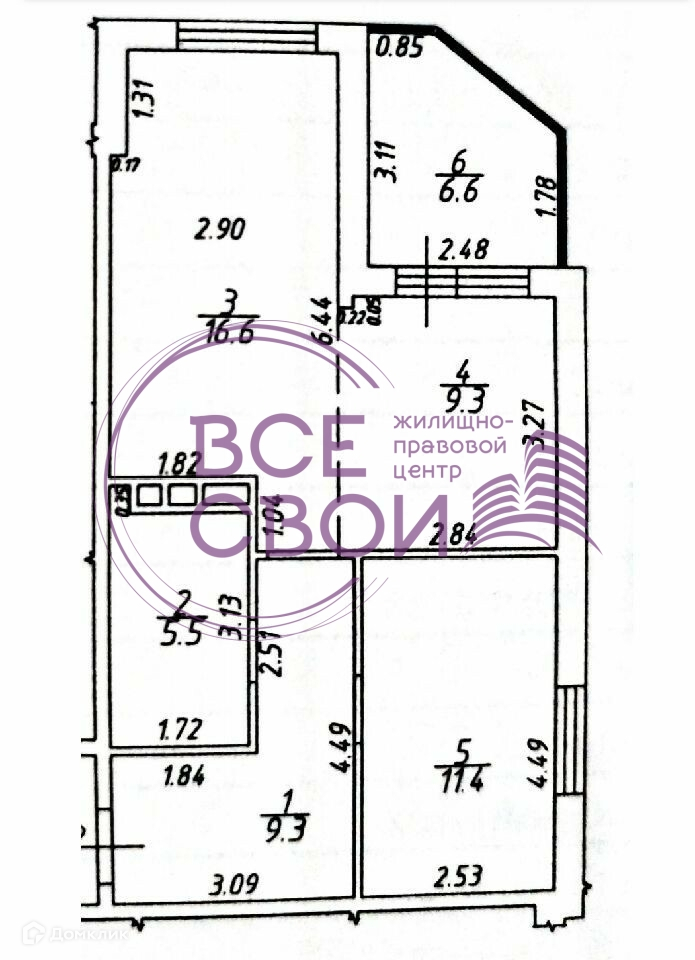 Общая площадь 57.1 м2