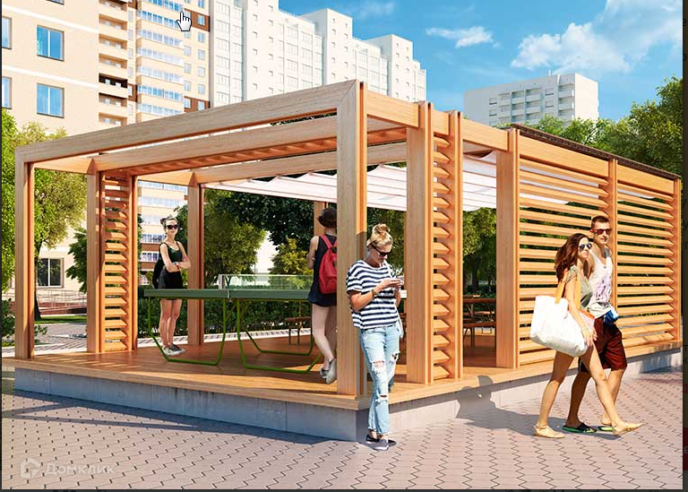 -Скаладром на территории жилого комплекса, беседки и зоны барбекю. Так же, современные детские площадки и прогулочные зоны,площадки для отдыха взрослых.