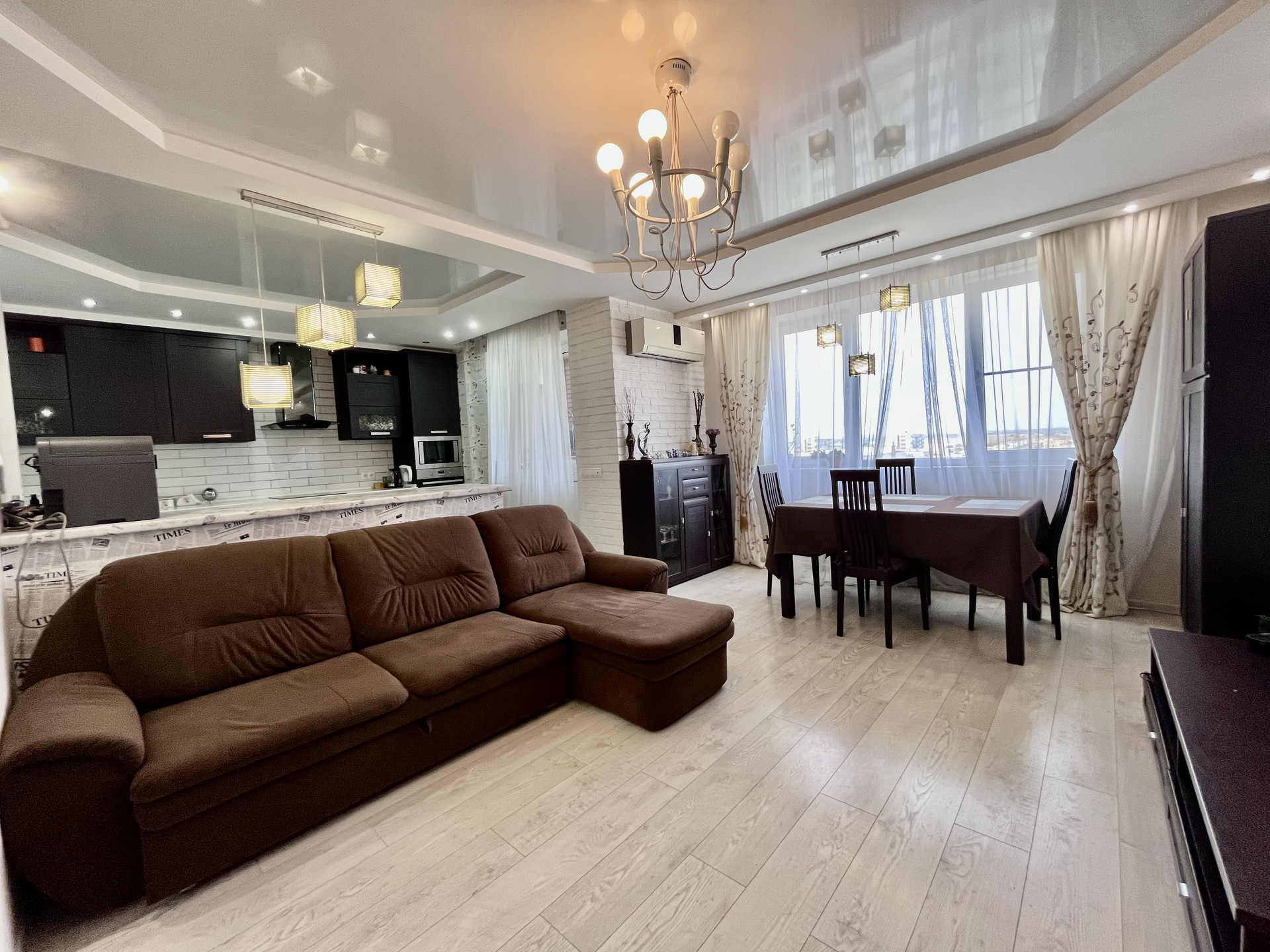 - кухня гостинная с теплым полом в зоне кухни