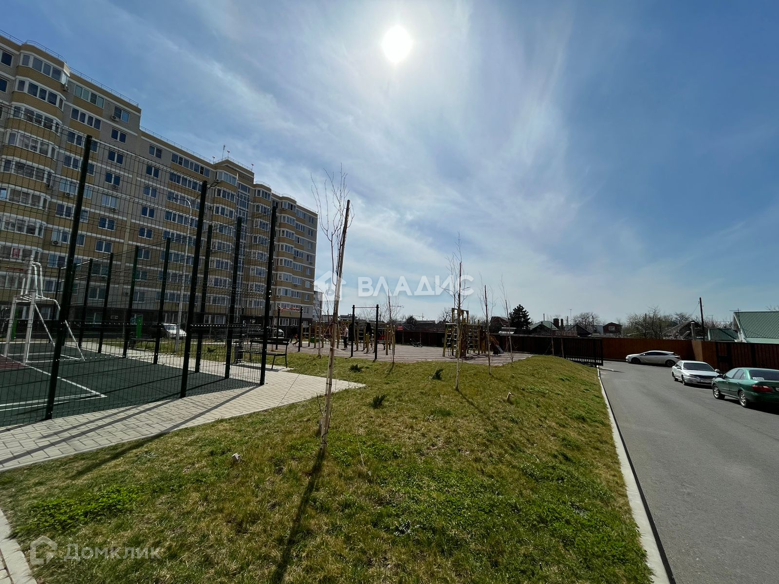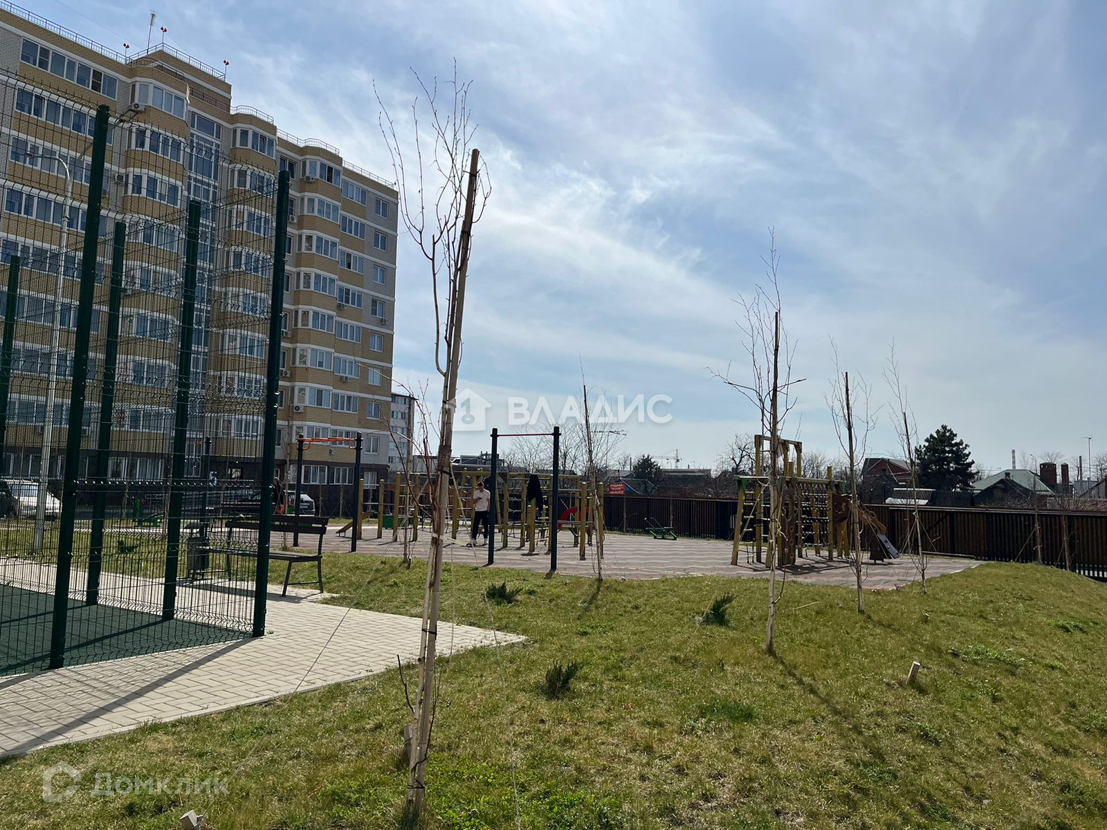 - Во дворе яркие и безопасные детские площадки.