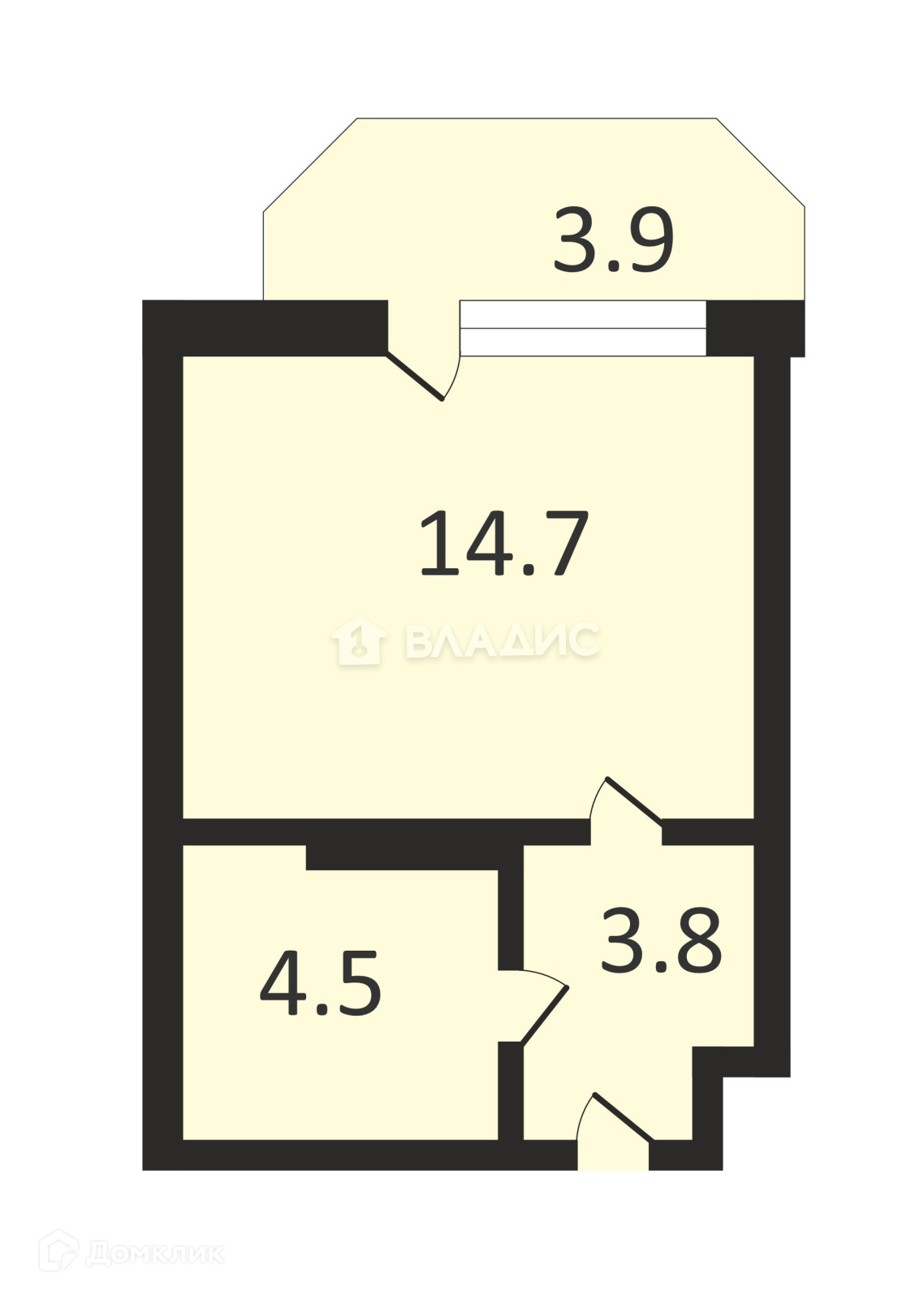 Жилая площадь 14.7 м2