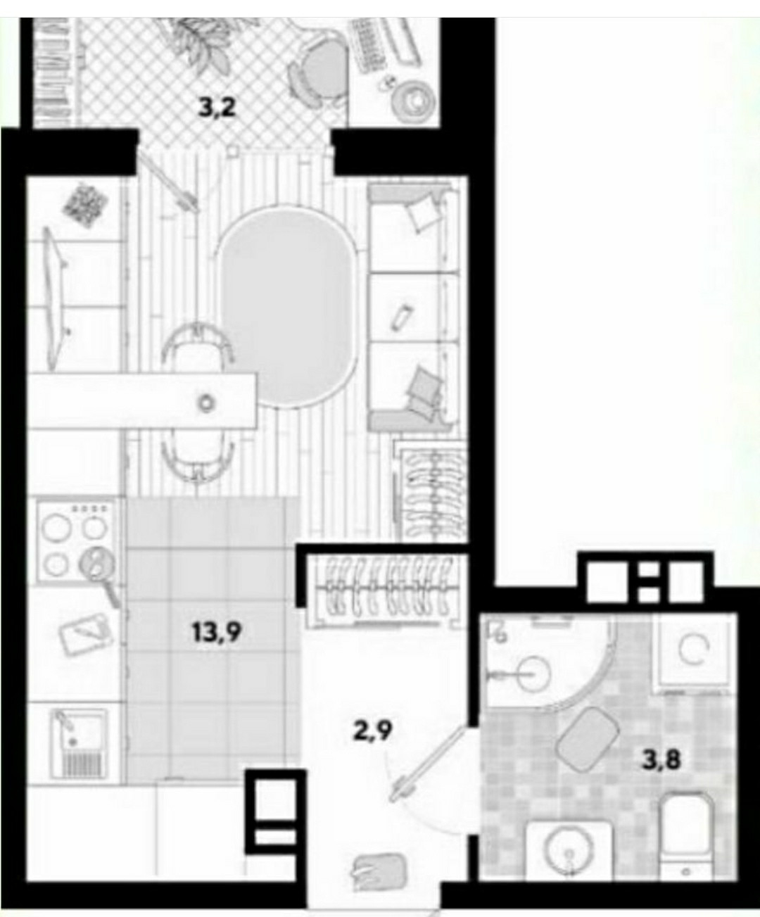 Жилая площадь 14 м2