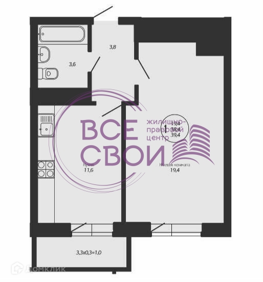 Общая площадь 39 м2