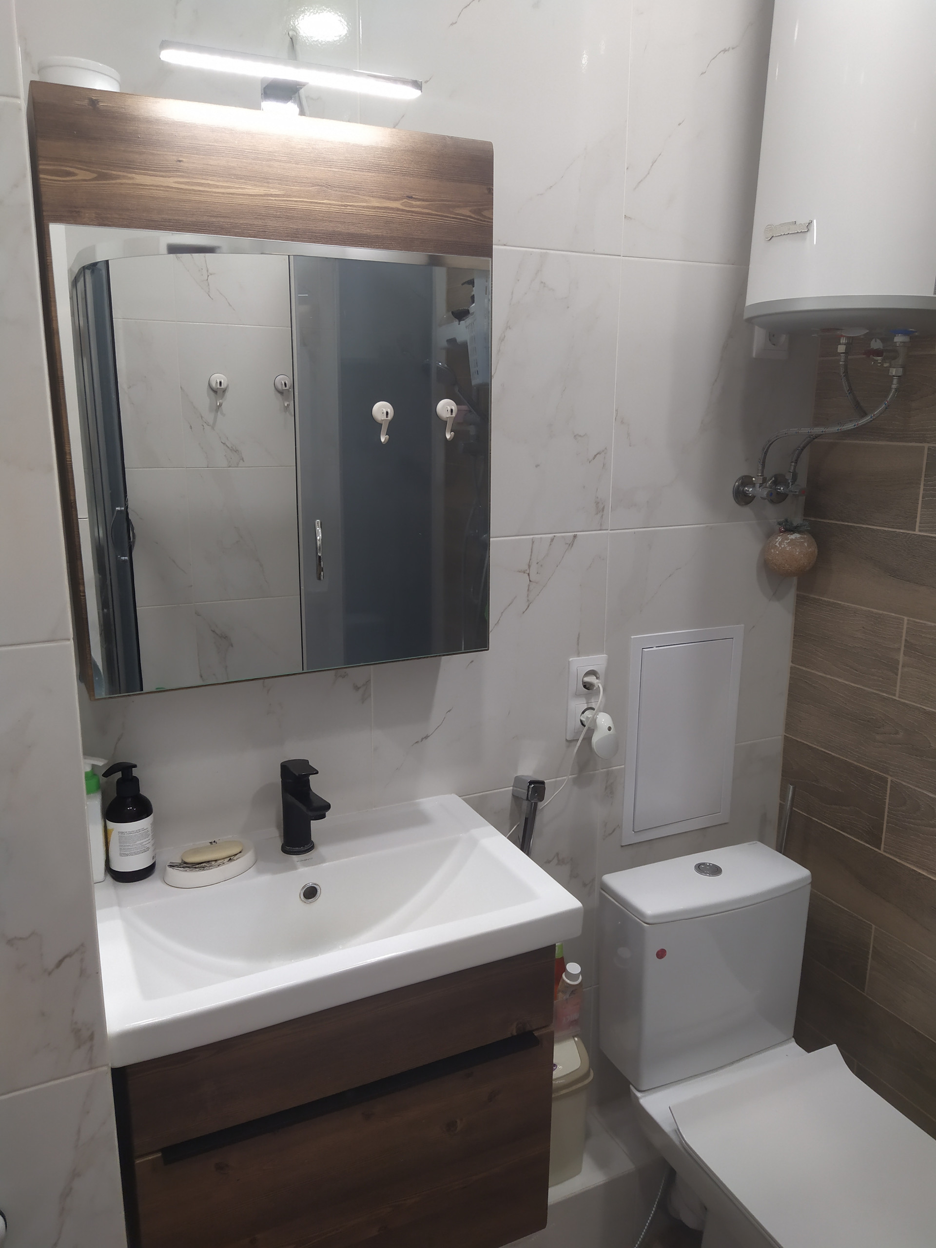 2 балкона утеплены, + эл.теплый пол. Современная кухня, отделка, сантехника.