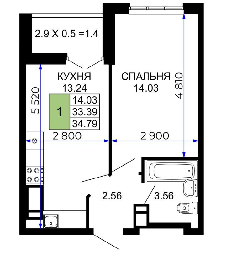Балкон, лоджия 1 балкон