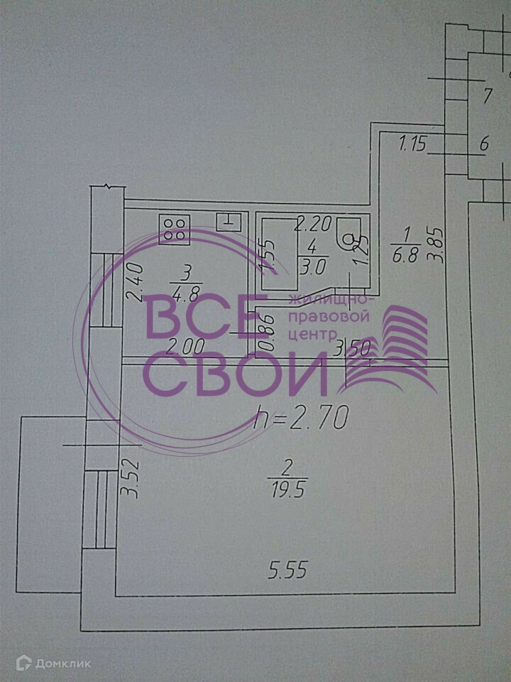 Площадь кухни 4.8 м2