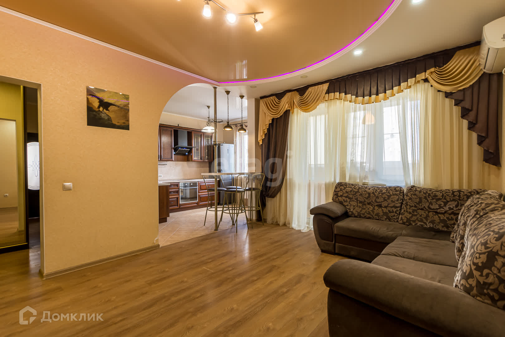 В квартире выполнен качественный ремонт с использованием прочных материалов, однако может требовать некоторого обновления по индивидуальным предпочтениям. Интересной особенностью является отсутствие стены между кухней и гостиной, заменённой лишь барной стойкой, что создаёт ощущение простора и позволяет эффективно использовать площадь. Просторная лоджия площадью 6,5 кв.м придает ещё больше преимуществ квартире.
