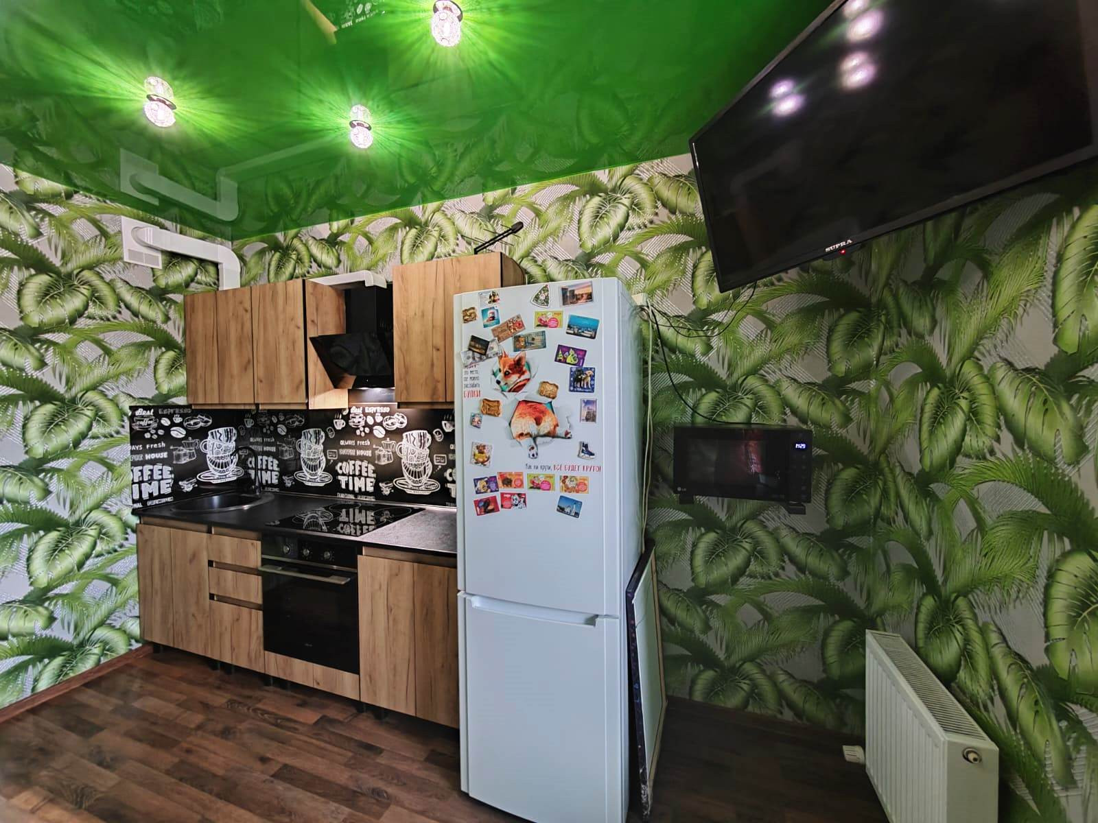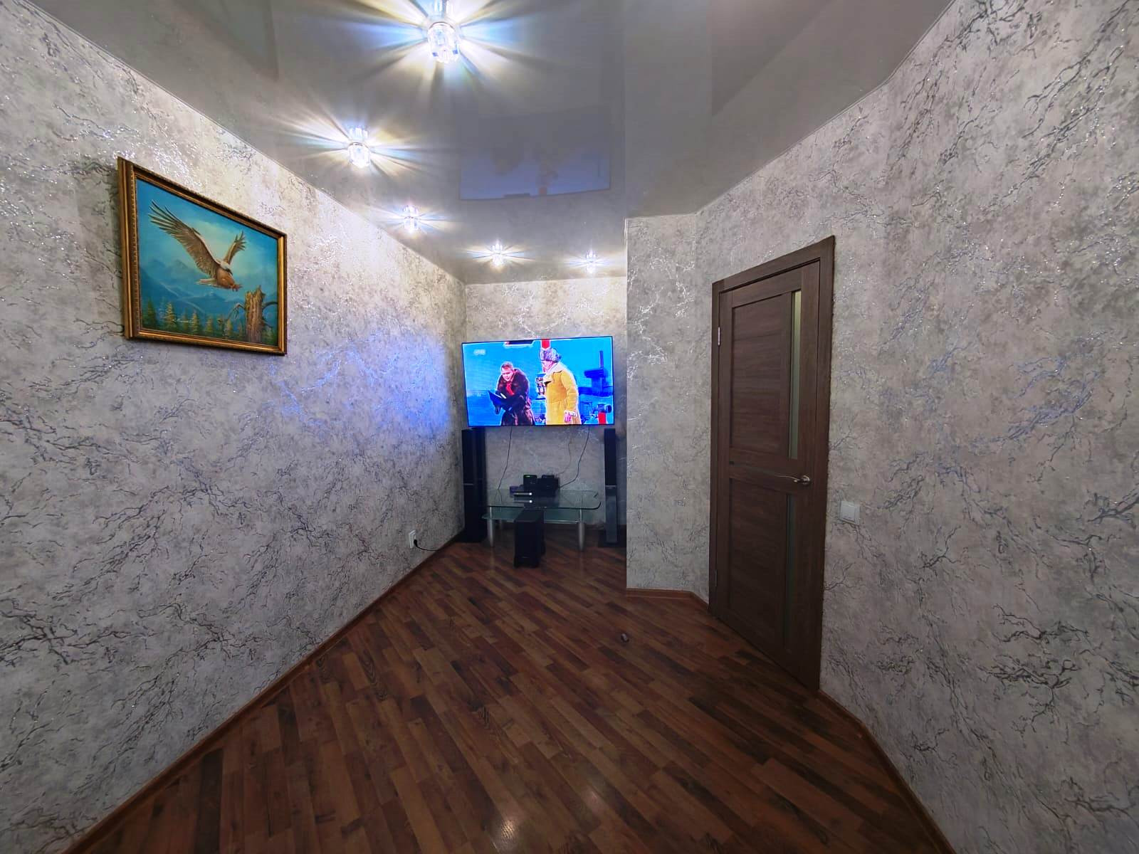 Квартира комфортная, стильная. Здесь шикарная кухня 10м2 с выходом на балкон. Просторная светлая комната. На полу ламинат, везде натяжные потолки . Сан.узел, полностью в плитке,пол кухни и коридора в плитке, установлена большая удобная ванна. Везде продумано зональное освещение, качественная электропроводка, много розеток. В доме все коммуникации центральные, этаж с красивыми видами на город, салюты. В доме 2 скоростных лифта (грузовой и пассажирский), не приходится ждать, в подъездах всегда чисто, красиво, дворы утопают в зелени, розах. Очень выгодно, что низкие коммунальные платежи.
