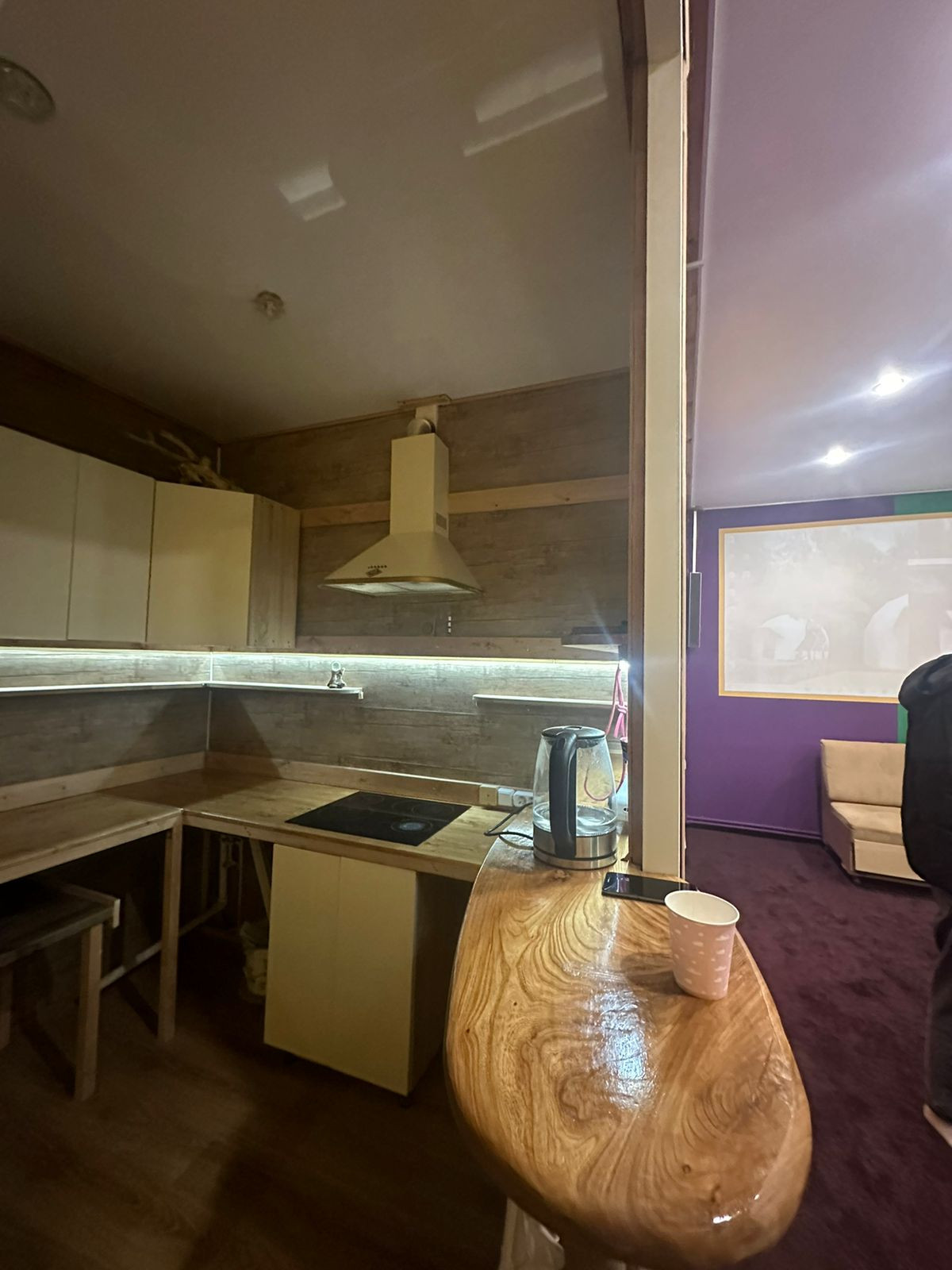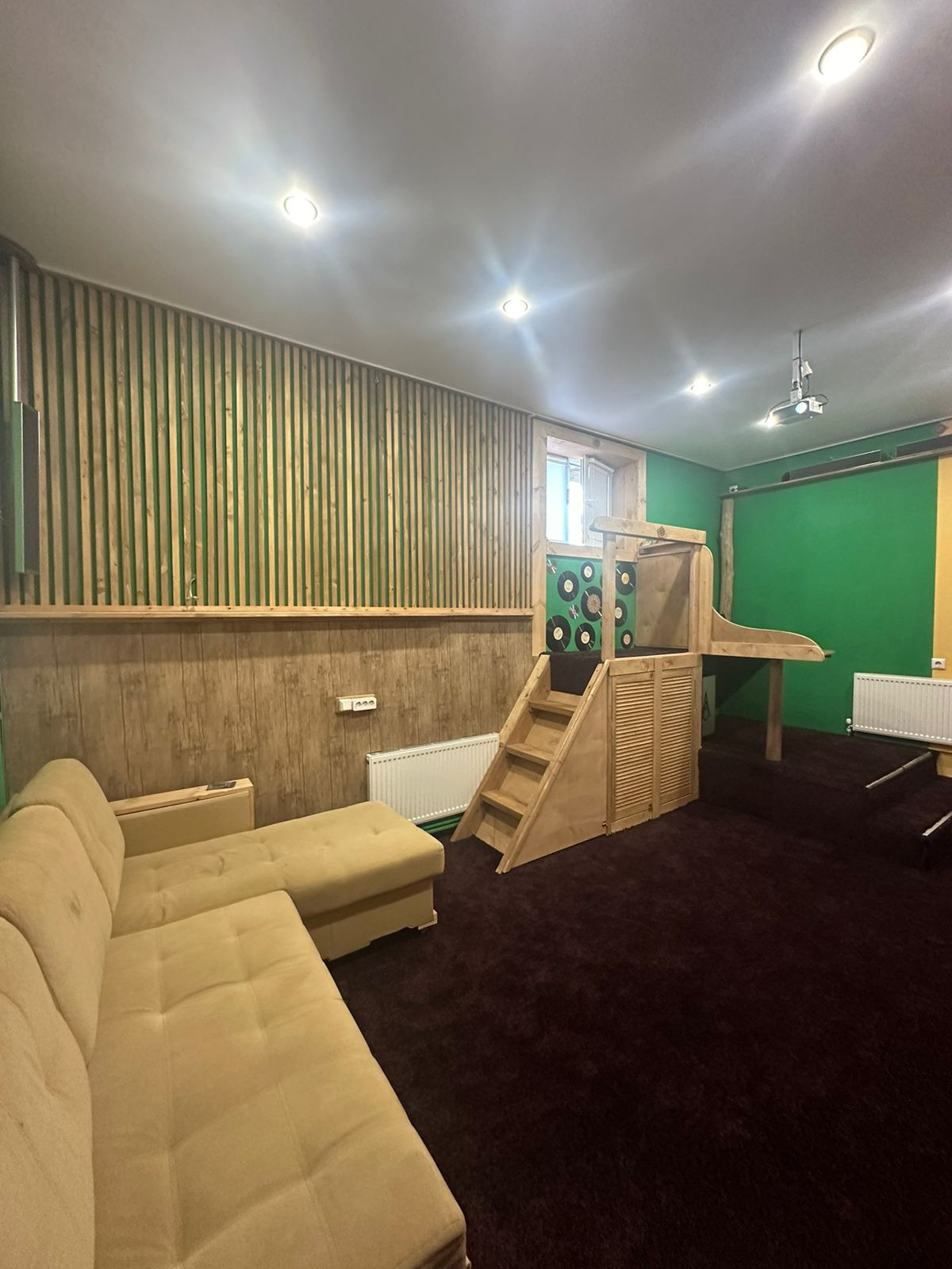 Собственный кинотеатр, стоит хороший музыкальный центр подключен к кинотеатру, продуман каждый см и подсветка для уюта. Остается все в квартире-как есть на видео и фото.