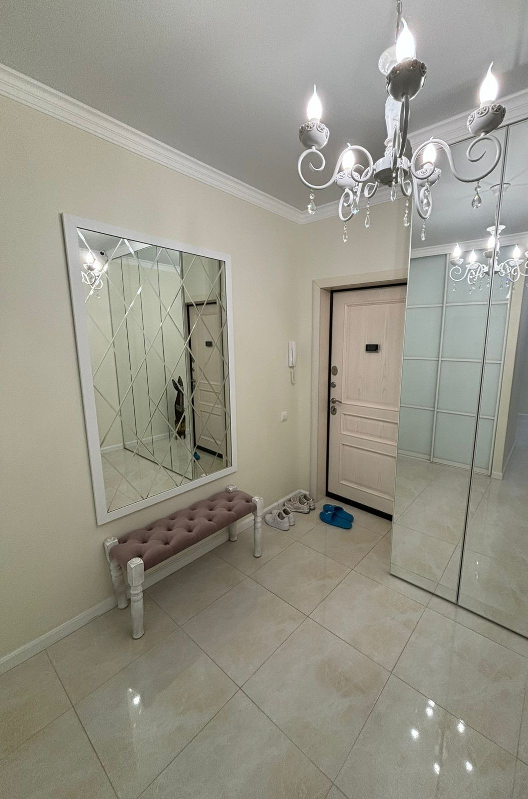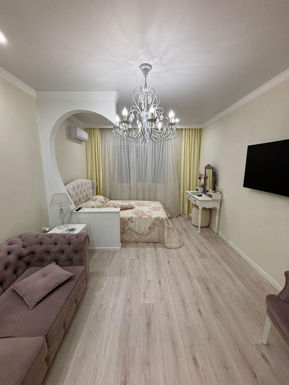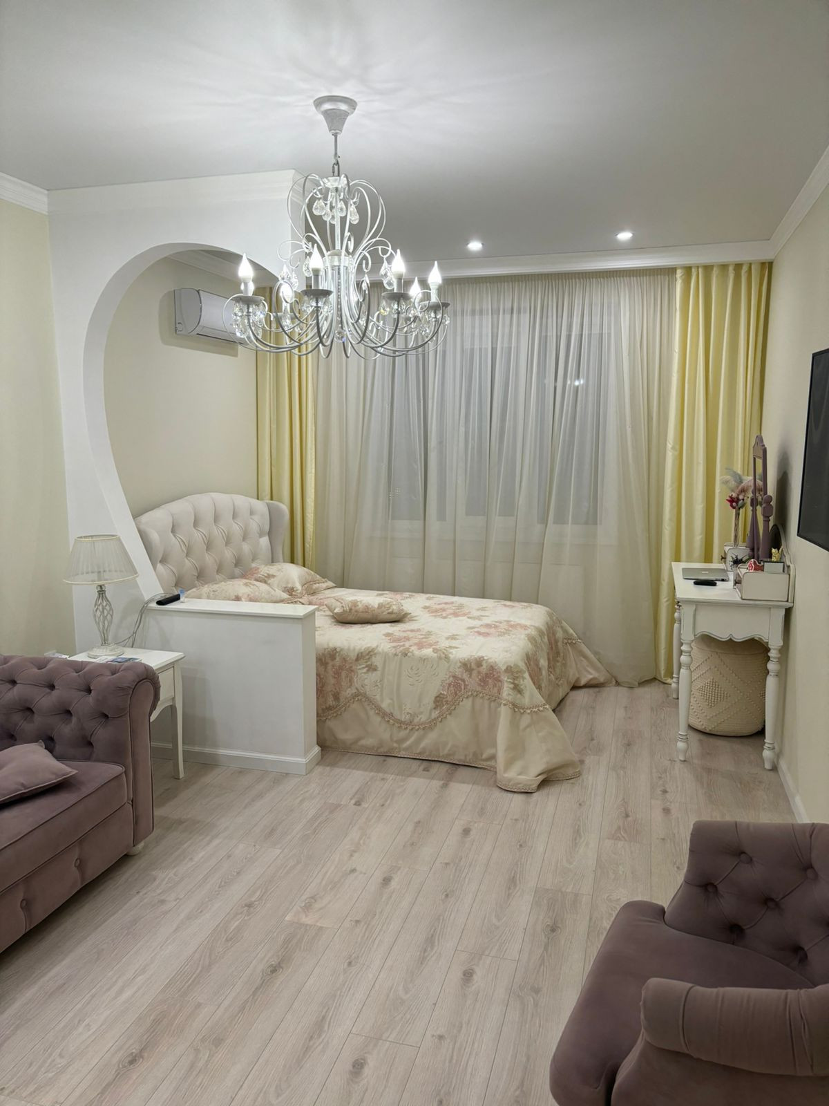 Планировка на 2 - стороны, большие комнаты + гардеробная. В квартире выполнен качественный ремонт в спокойных тонах, а также установлена дорогостоящая мебель и техника. При продаже остается все (кроме 2-х телевизоров и одного столика). Теплые полы практически по всей площади квартиры + система видеонаблюдения.