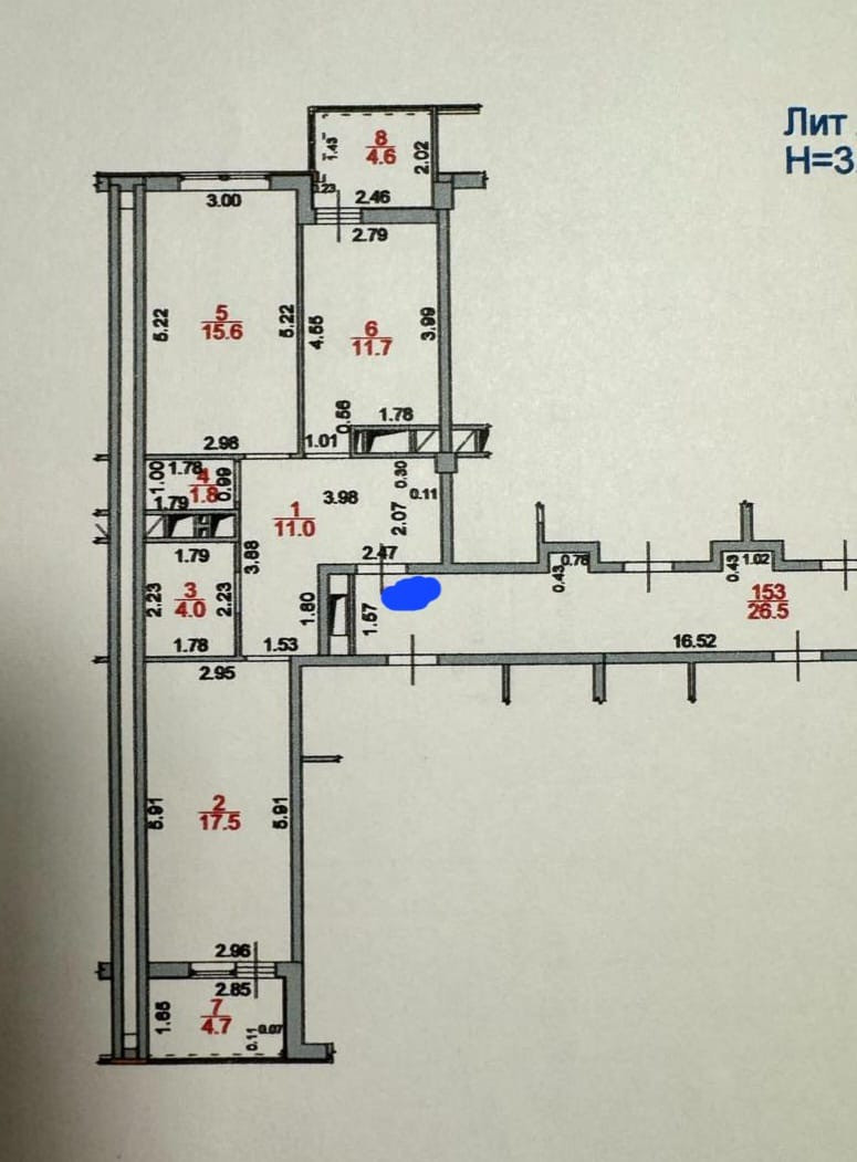 Жилая площадь 33.1 м2