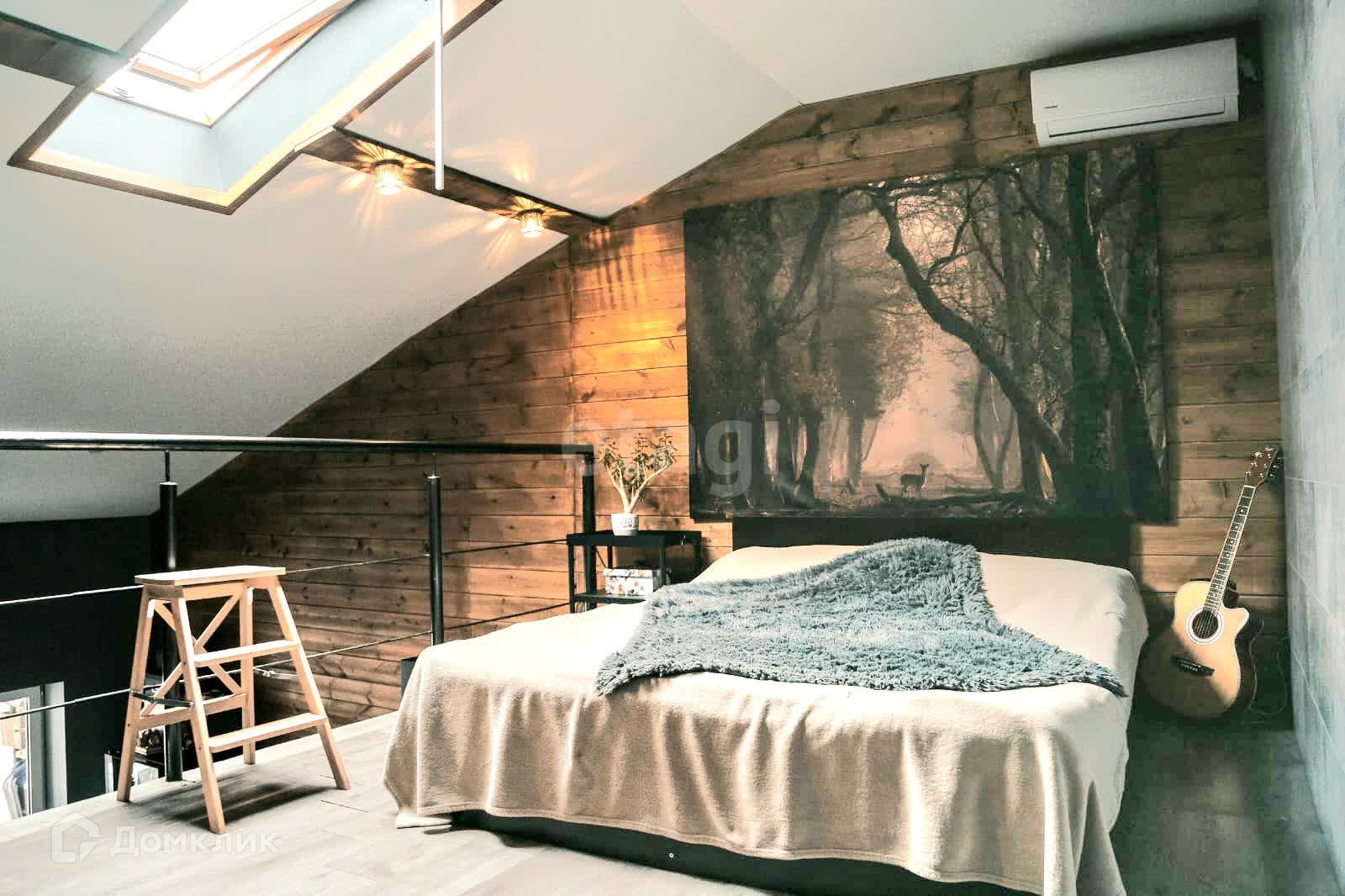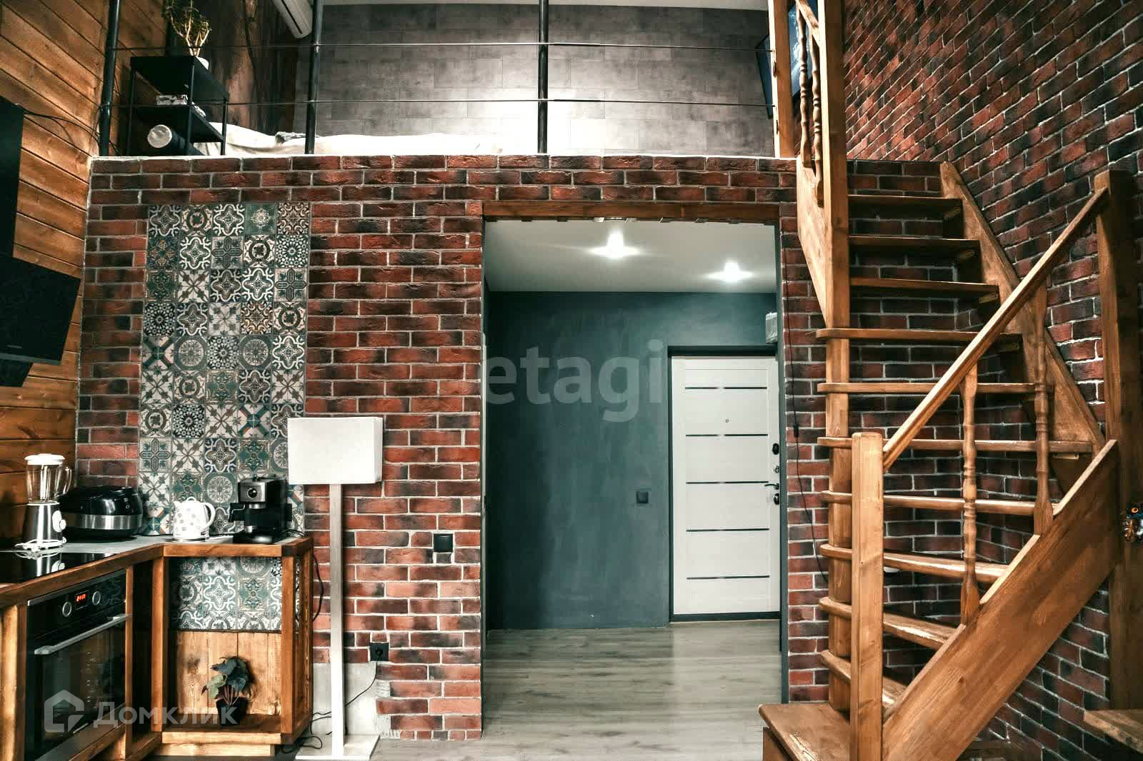 В квартире сделан современный ремонт. Одна стена выложена деревом,другая декоративный кирпич.⠀