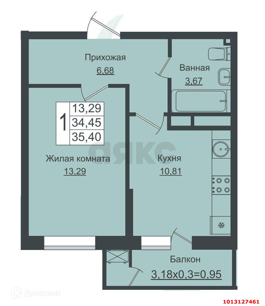 1-комнатная квартира, 34.45 м2, этаж 3 / 18, на продажу в Краснодаре, улица Западный Обход, 39