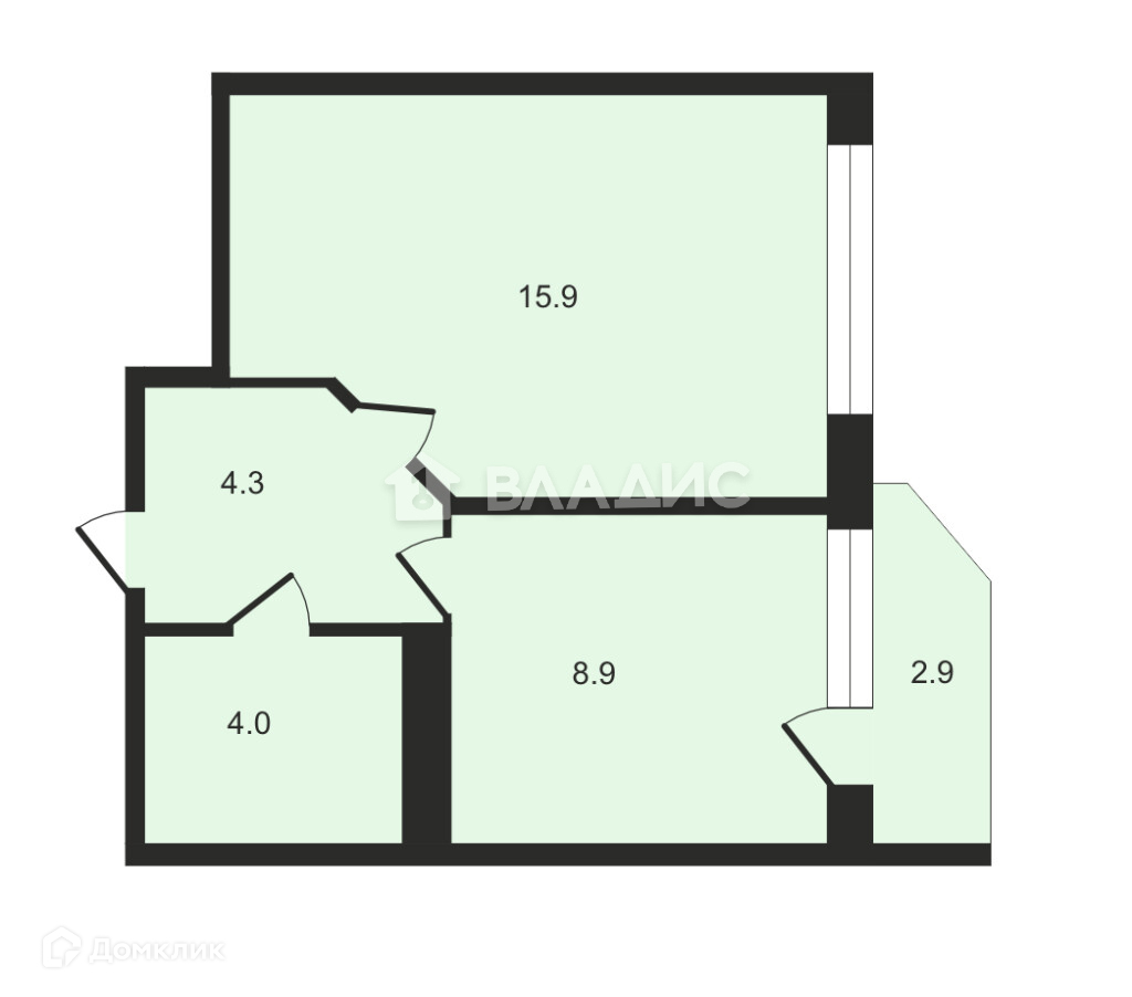 Общая площадь 33.1 м2
