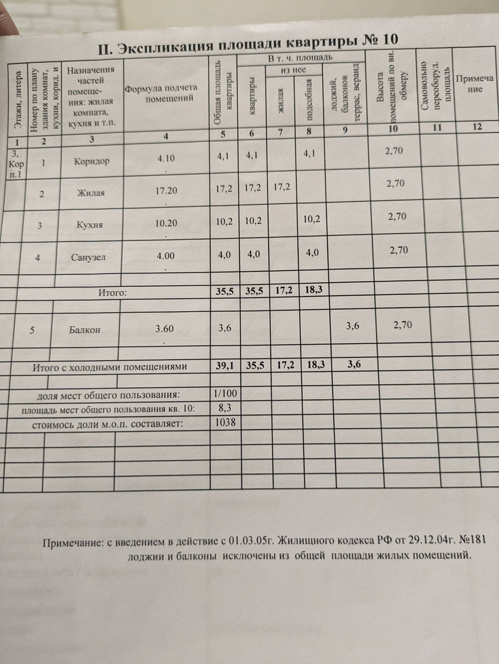 Общая площадь 35.5 м2