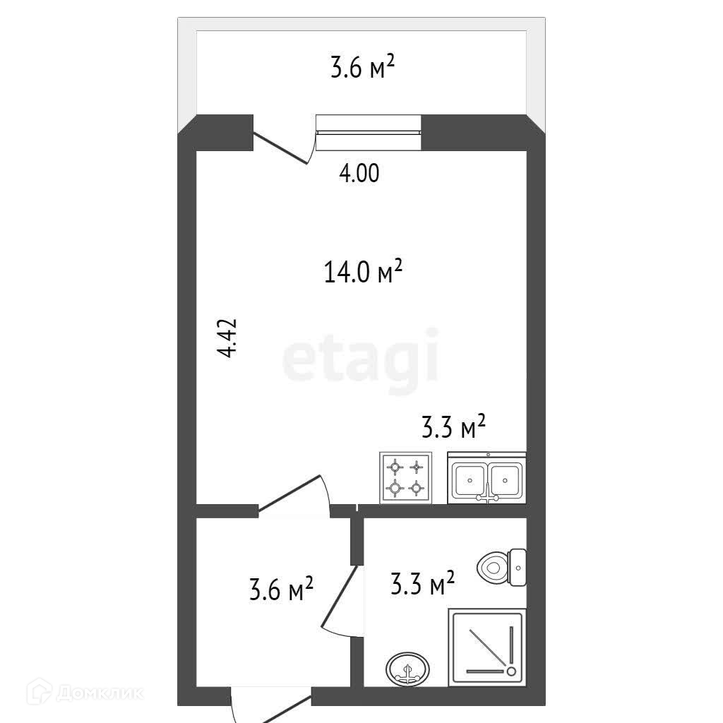 Квартира студия, 23.9 м2, этаж 14 / 16, на продажу в Краснодаре, улица Лётчика Позднякова, 2к15