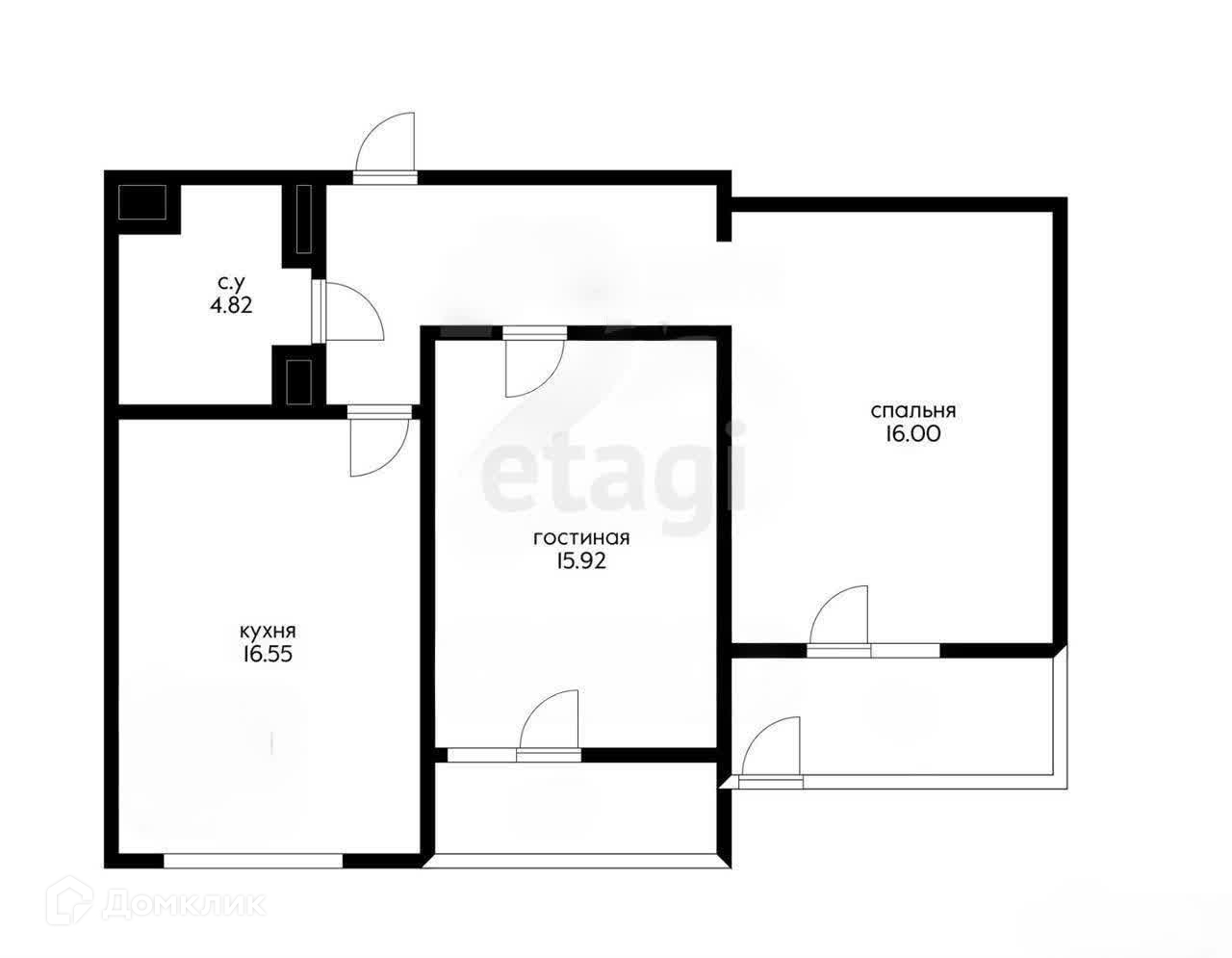 Общая площадь 60.8 м2