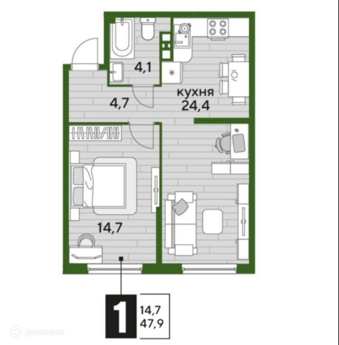Общая площадь 47.9 м2
