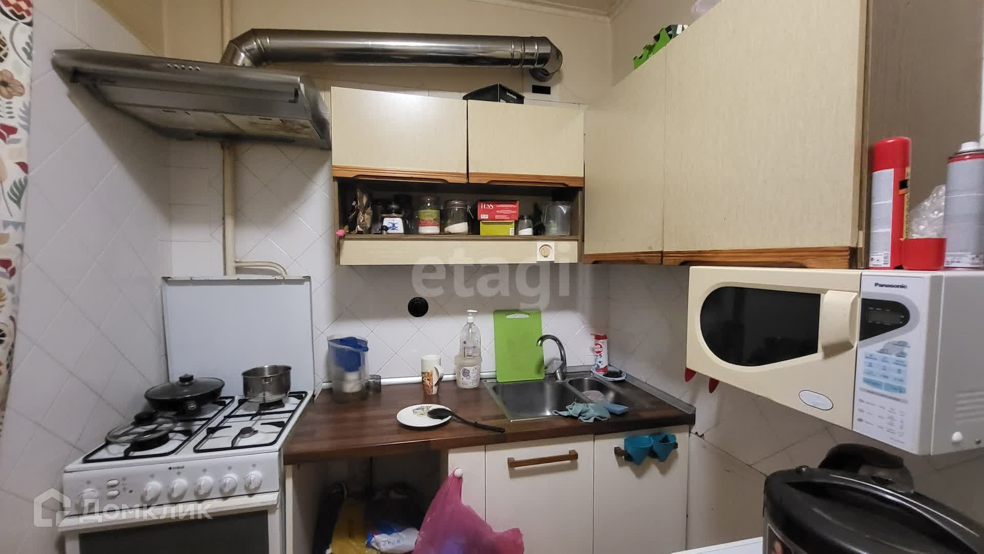 Площадь 43 м2 (+ застекленный балкон 3 м2), расположена на 5 этаже 9-этажного кирпичного одноподъездного дома 1982 года постройки.