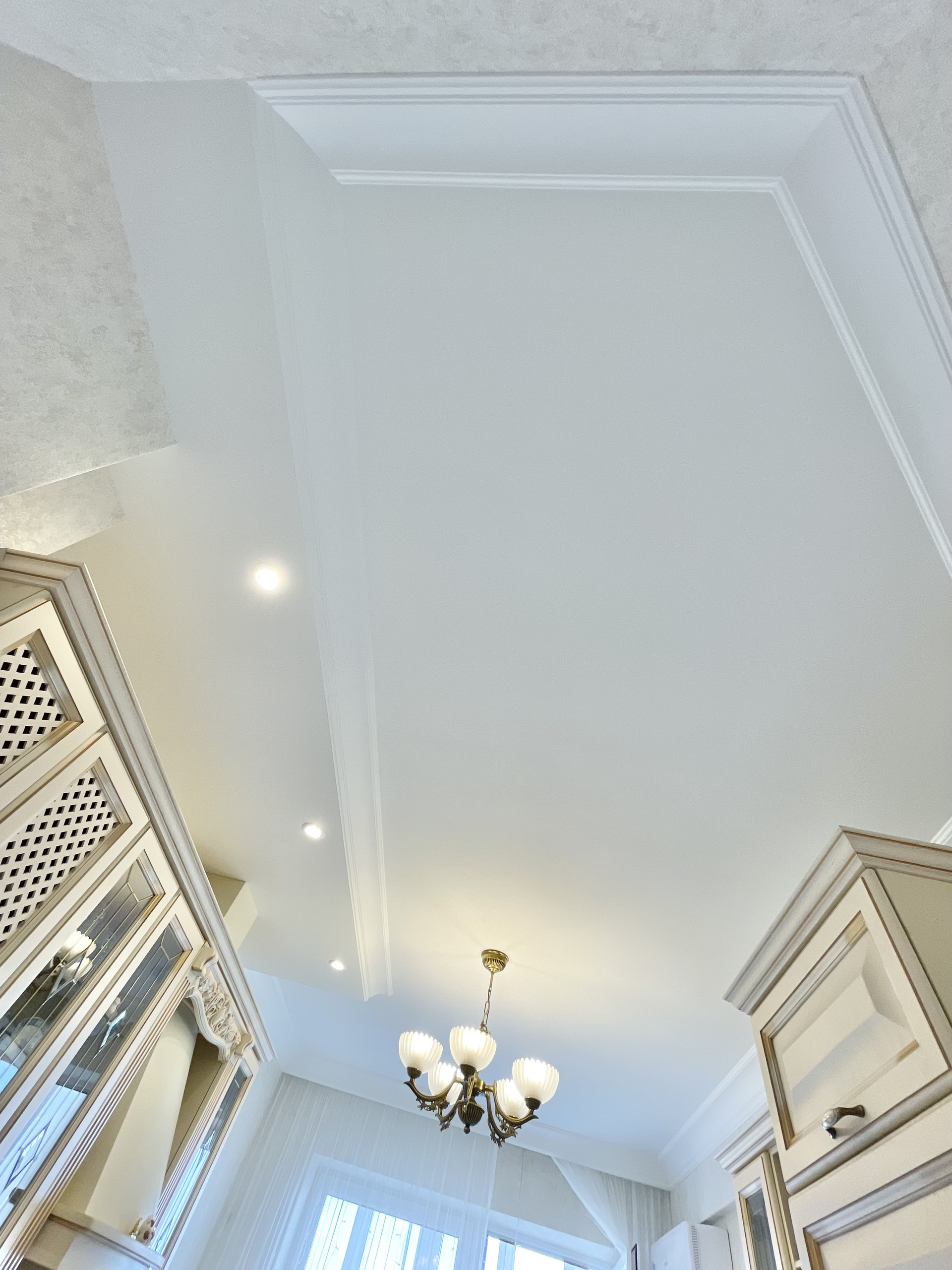 Во всех комнатах идеально ровный белый потолок, НЕ натяжной! Окрашен дорогой немецкой краской.