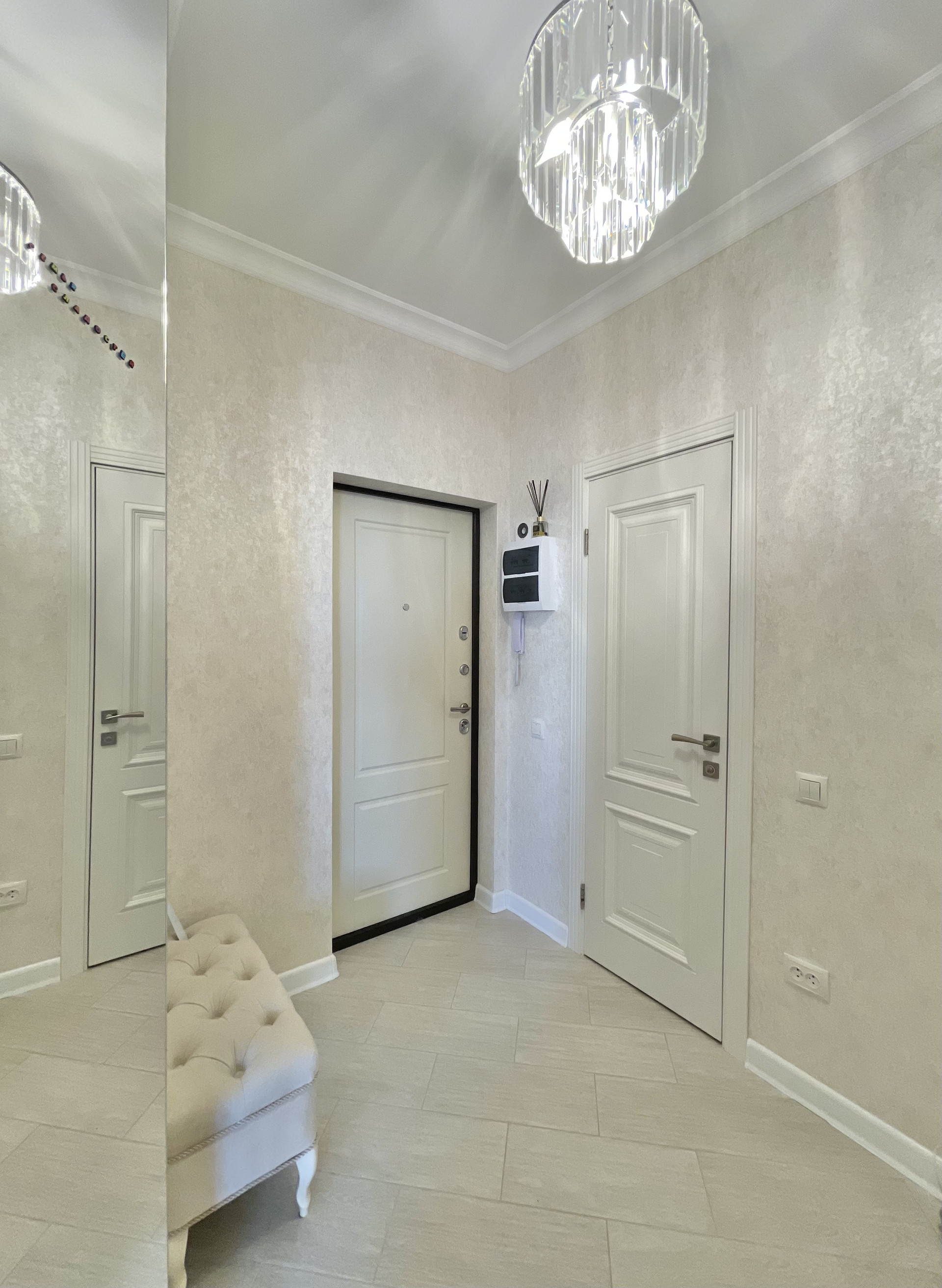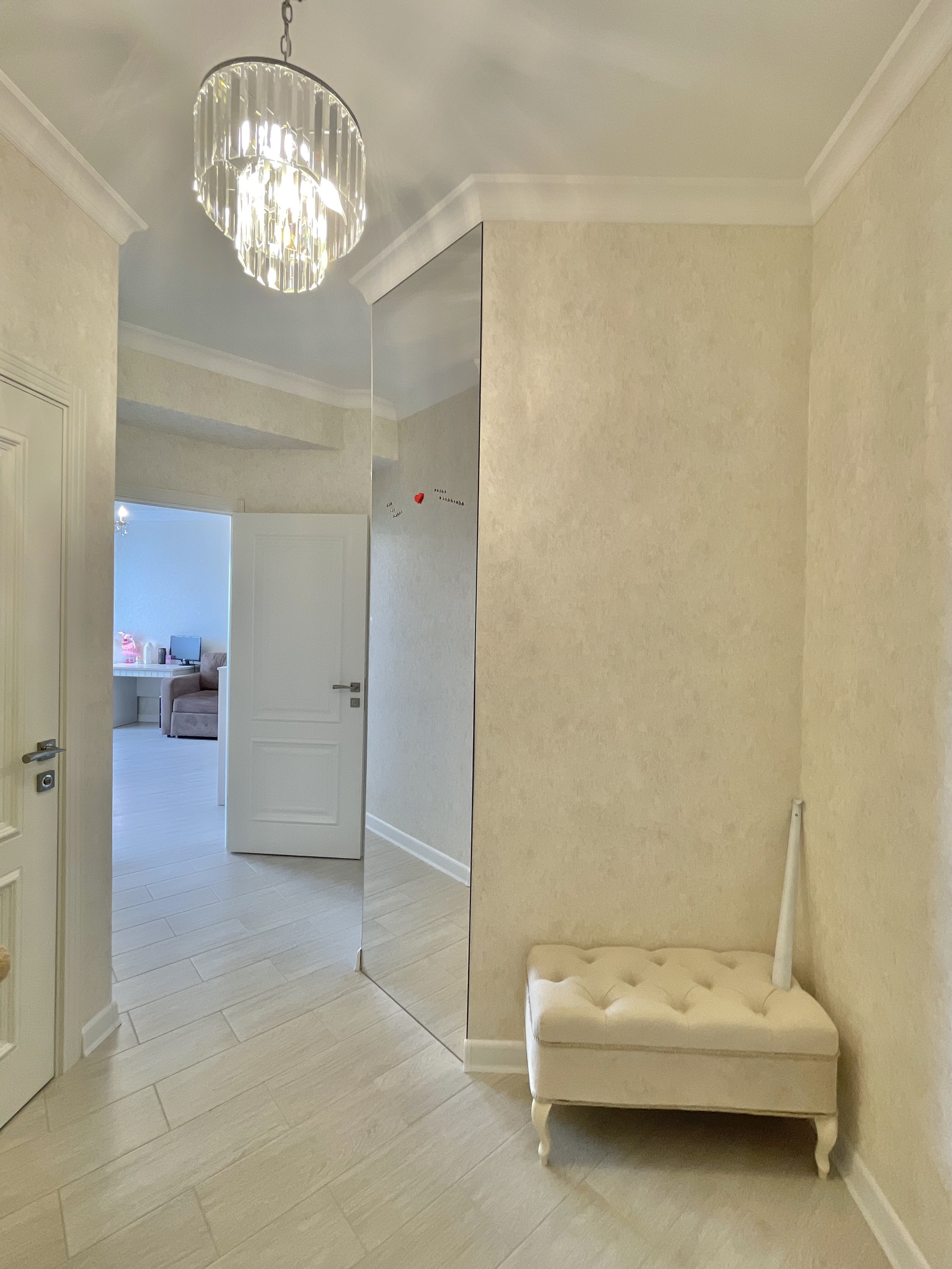 Цельное зеркало от пола до потолка в коридоре.