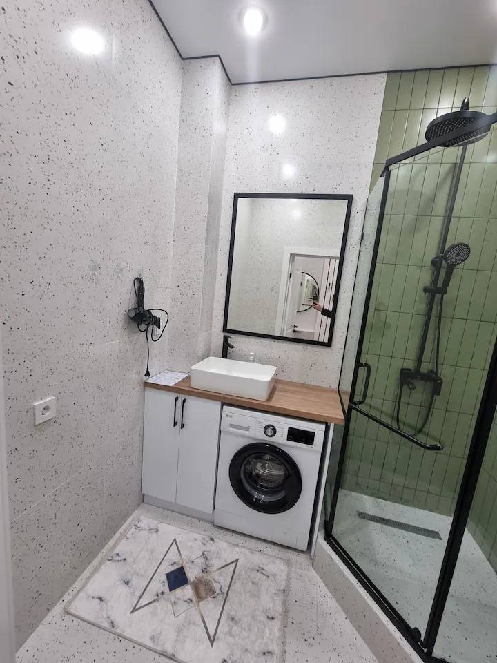 Планировка квартиры функциональна и хорошо продумана. В квартире имеется просторная кухня-гостиная. Кухонная зона оборудована всеми необходимыми бытовыми приборами и имеет удобное рабочее пространство. В ванной комнате установлена современная сантехника и душевая кабина.
