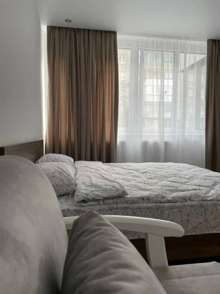 Удобная кухня оборудована современными приборами. Отдельная ванная комната имеет современную сантехнику и стильную отделку. Просторная спальня обставлена всей необходимой мебелью.