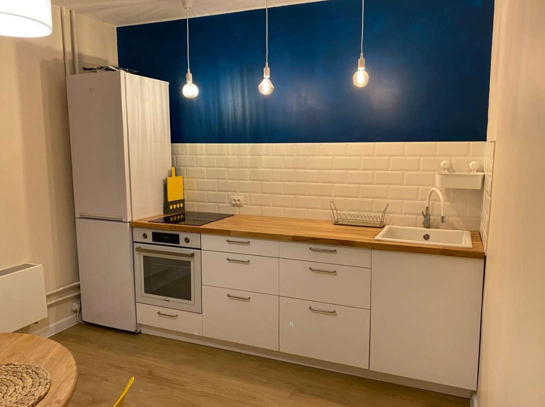 В квартире выполнен современный ремонт. Мебель и техника остается. Удобной классическая планировка: большая комната, кухня с выходом на балкон. Балкон застеклён и утеплен.