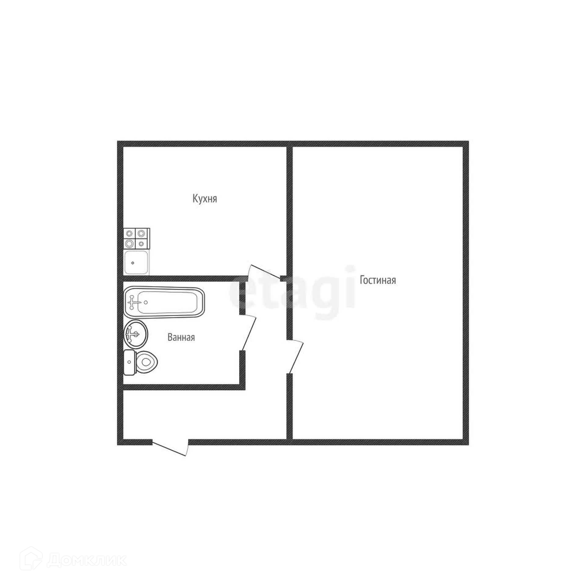 Общая площадь 33.7 м2