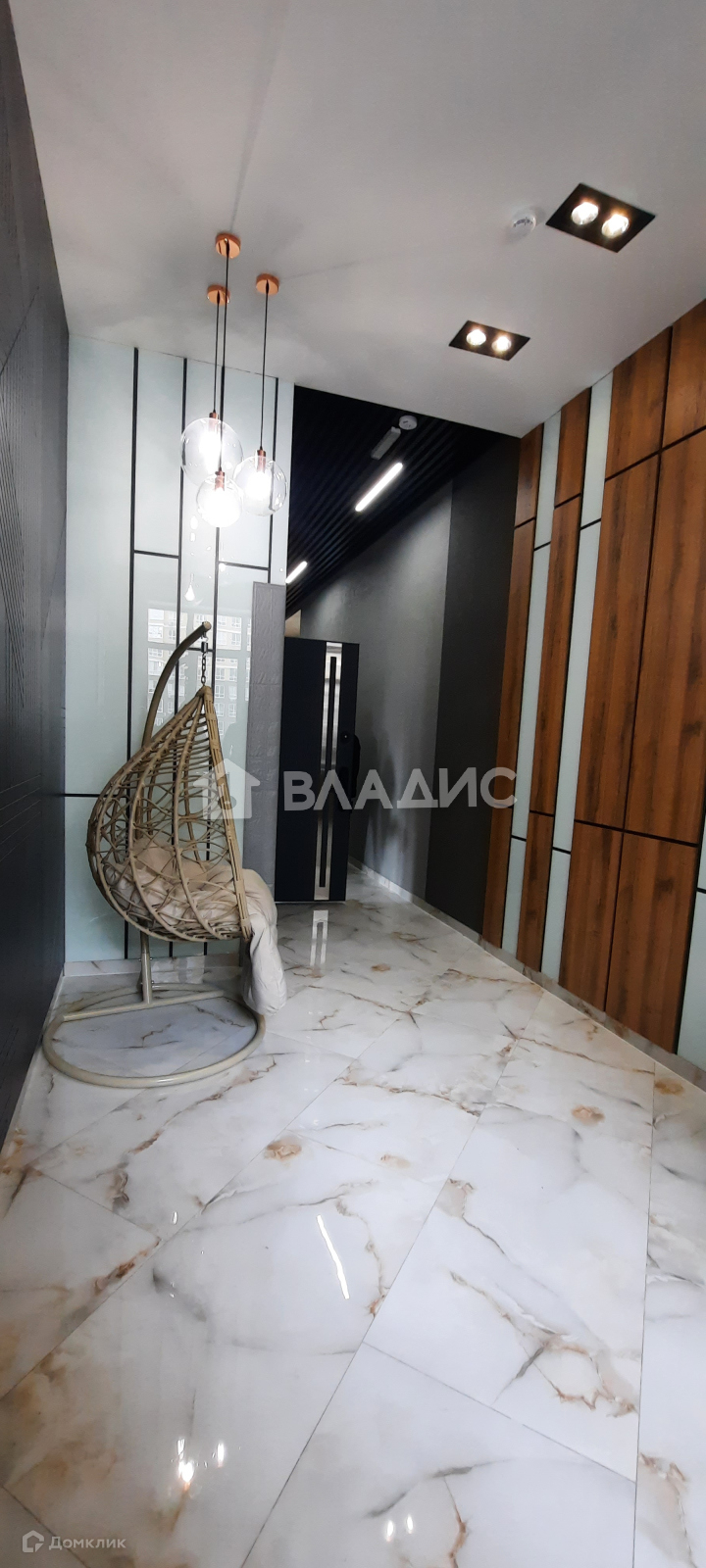-номера квартир подсвечены проекцией, а вход в квартиру - по коду или отпечатку пальцев