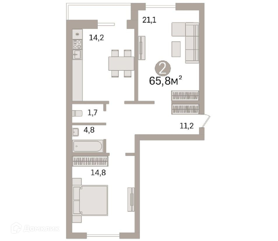 Общая площадь 65.8 м2