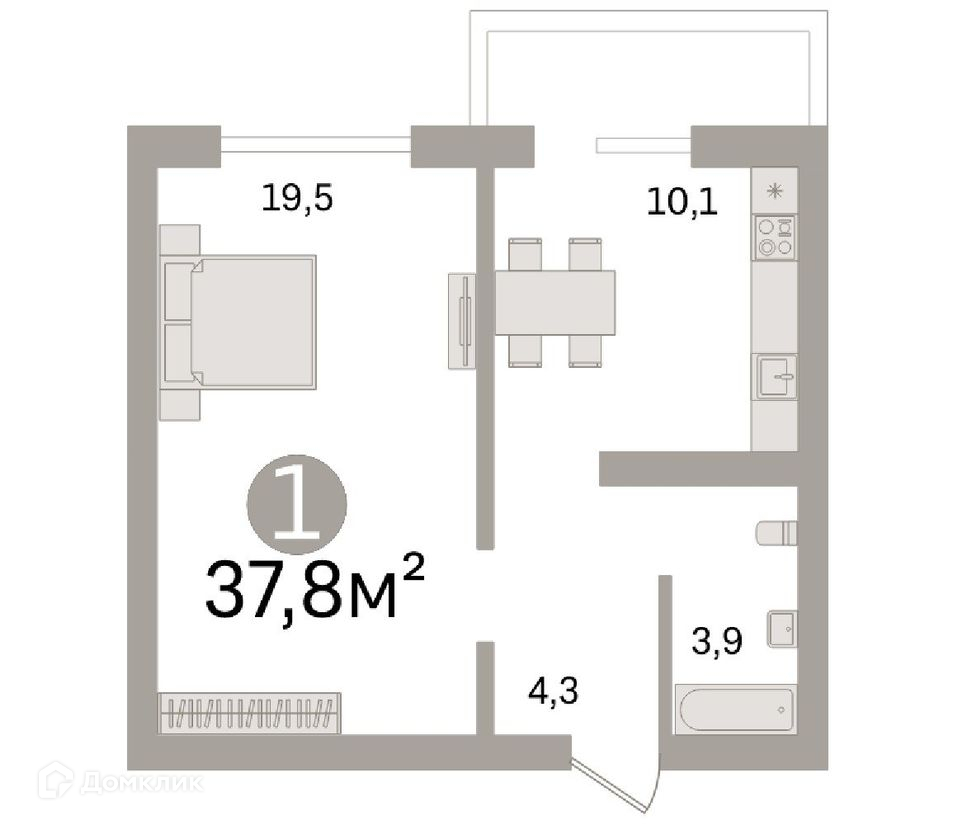 Общая площадь 37.8 м2