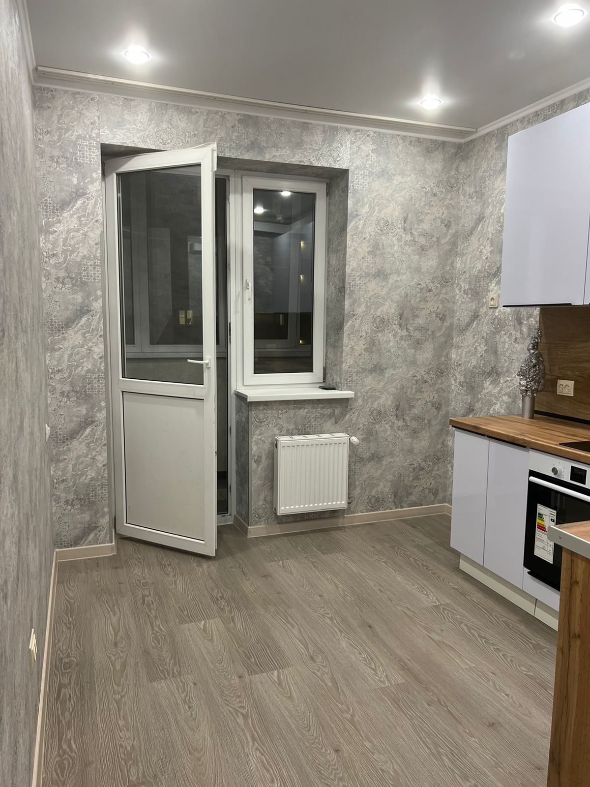 Сделан качественный ремонт "ДЛЯ СЕБЯ" . Установлен встроенный кухонный гарнитур со встроенной бытовой техникой (Варочная панель, духовой шкаф, вытяжка).