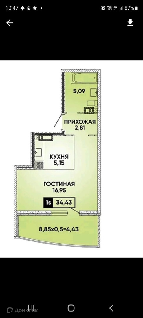 Общая площадь 34 м2