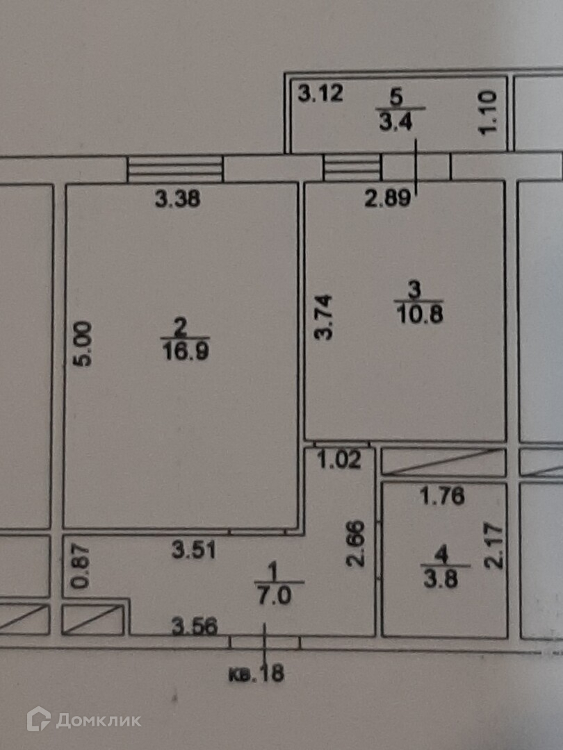 Жилая площадь 16.9 м2