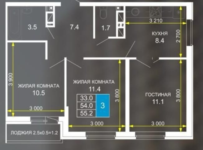 Высота потолков 2.7 м