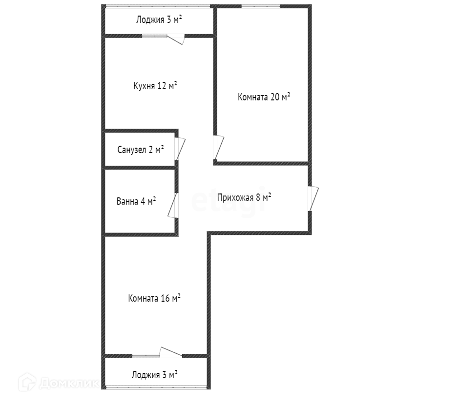 Общая площадь 61.5 м2