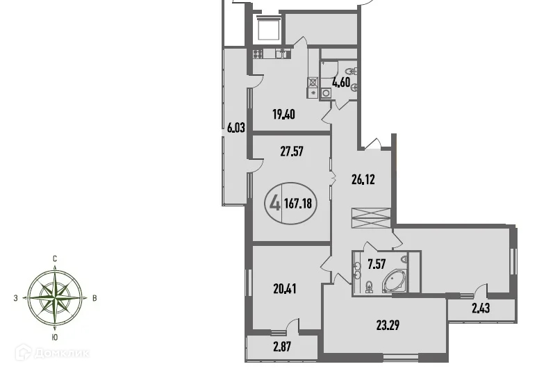 Количество комнат 4