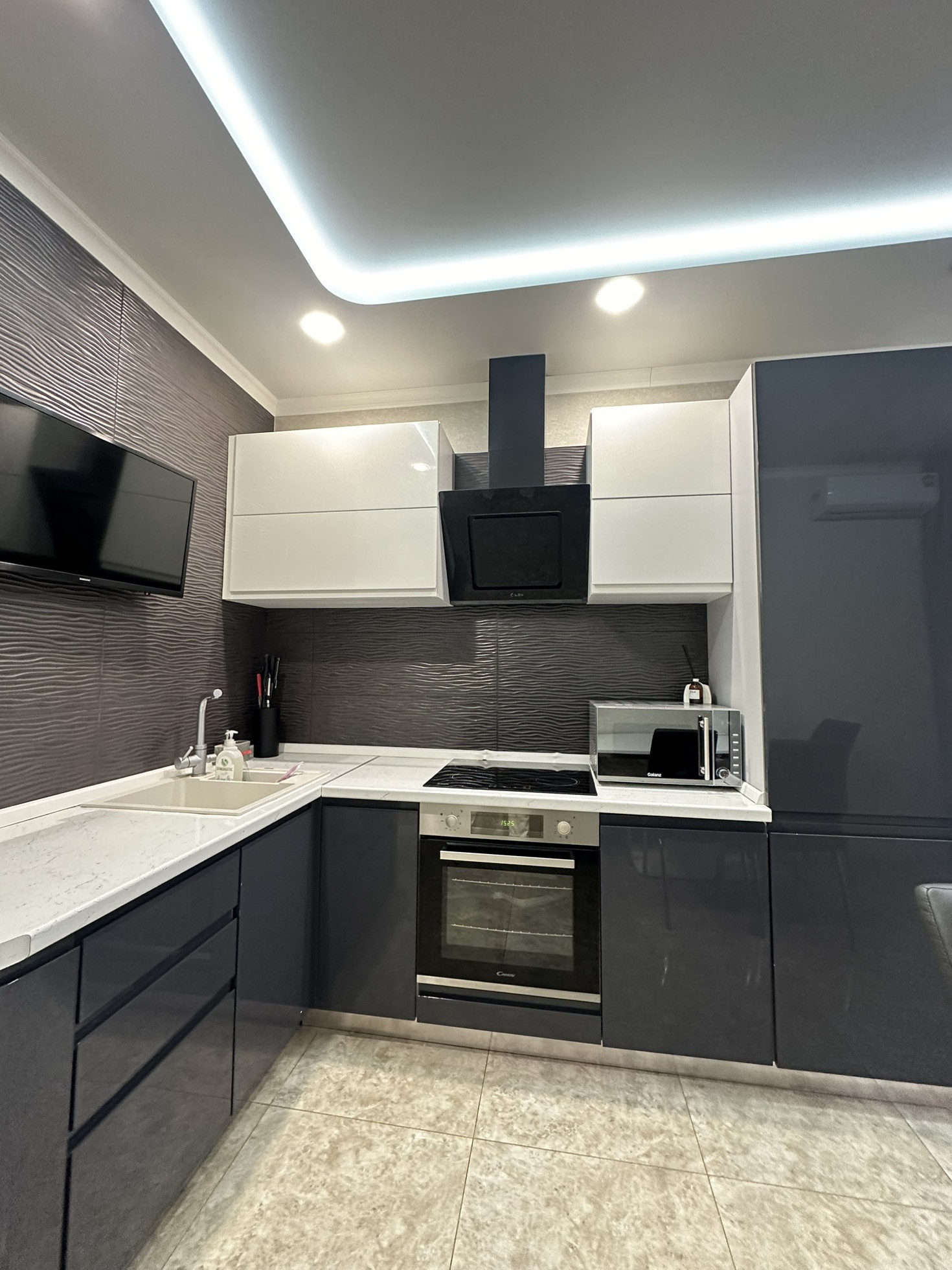 квартиру делали полностью для себя, не экономили на ремонте и стройматериалах. В коридоре, на кухне на полах керамогранит, на стенах дорогие обои. В ванной дорогая плитка. Во всей квартире натяжные потолки. В кухне около рабочей зоны, также на стенах дорогая дизайнерская плитка. Квартиру эксплуатировали очень аккуратно. В аренду никогда не сдавалась! Жили только хозяева, без детей и животных. В квартире остается вся мебель и техника: стиралка, 2 телевизора, 2 сплит системы, встраиваемых холодильник, посудомойка, вытяжка, варочная панель, духовой шкаф, микроволновая печь.